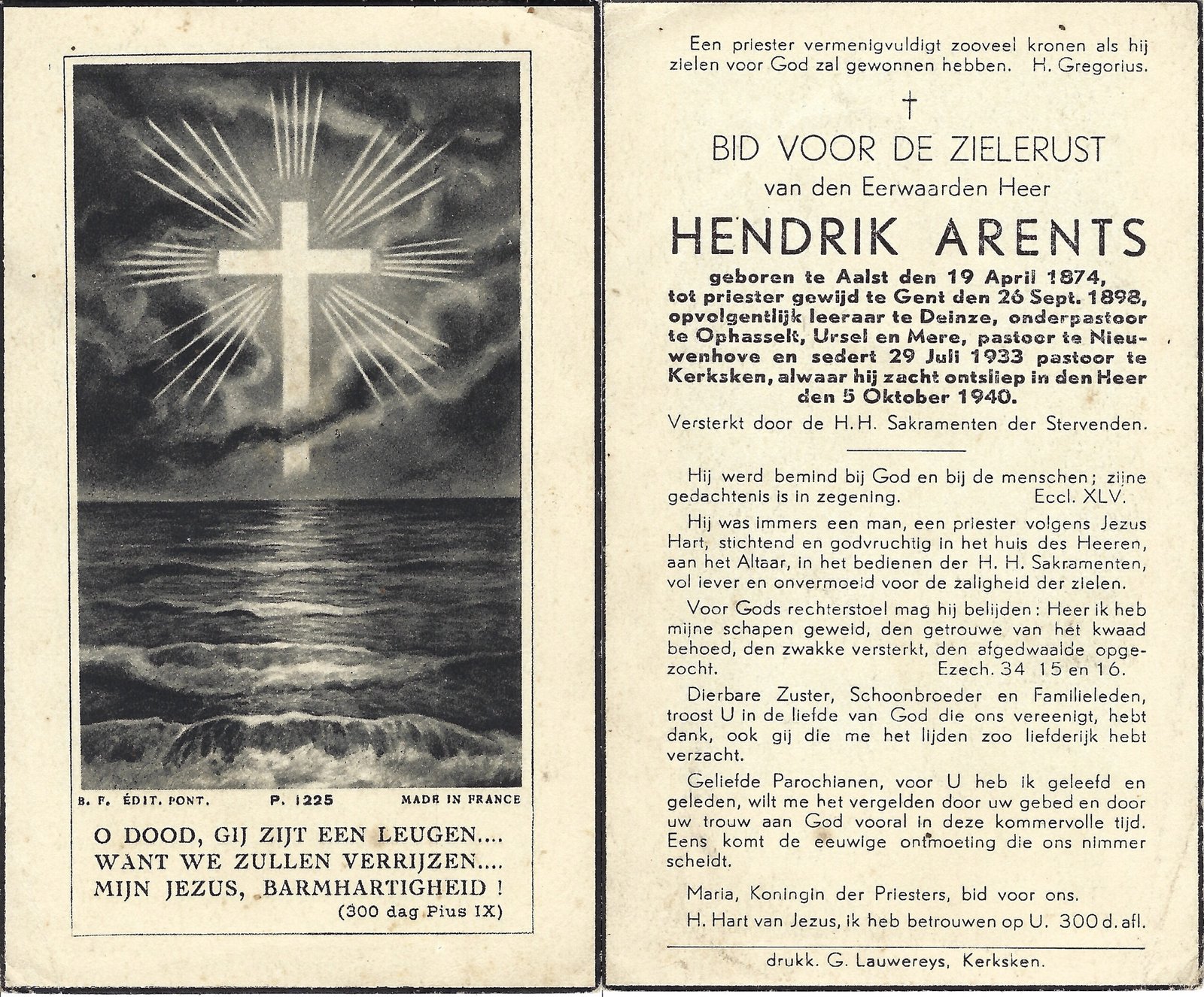 | Arents Hendrik, Priester Kerksken | Aalst | 19/04/1874 | Kerksken | 05/10/1940 |