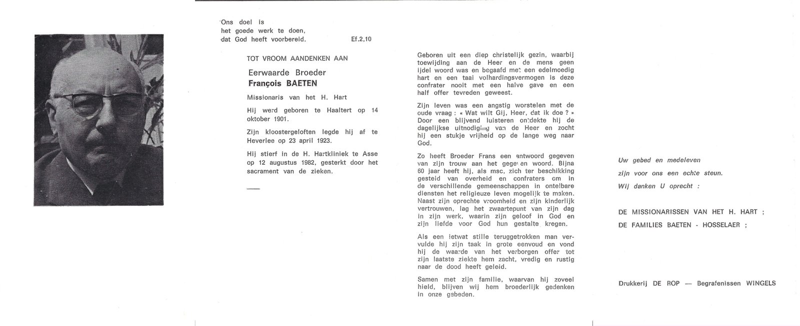 | Baeten Francois, Broeder | Haaltert | 14/10/1901 | Asse | 12/08/1982 |