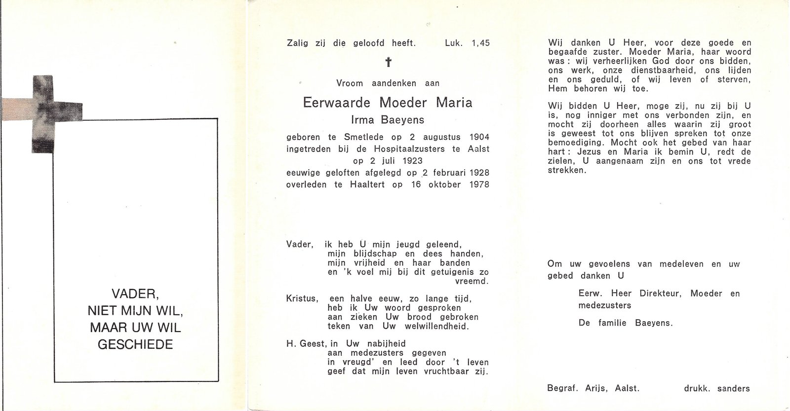 | Baeyens Irma, Moeder Maria | Smetlede | 02/08/1904 | Haaltert | 16/10/1978 |