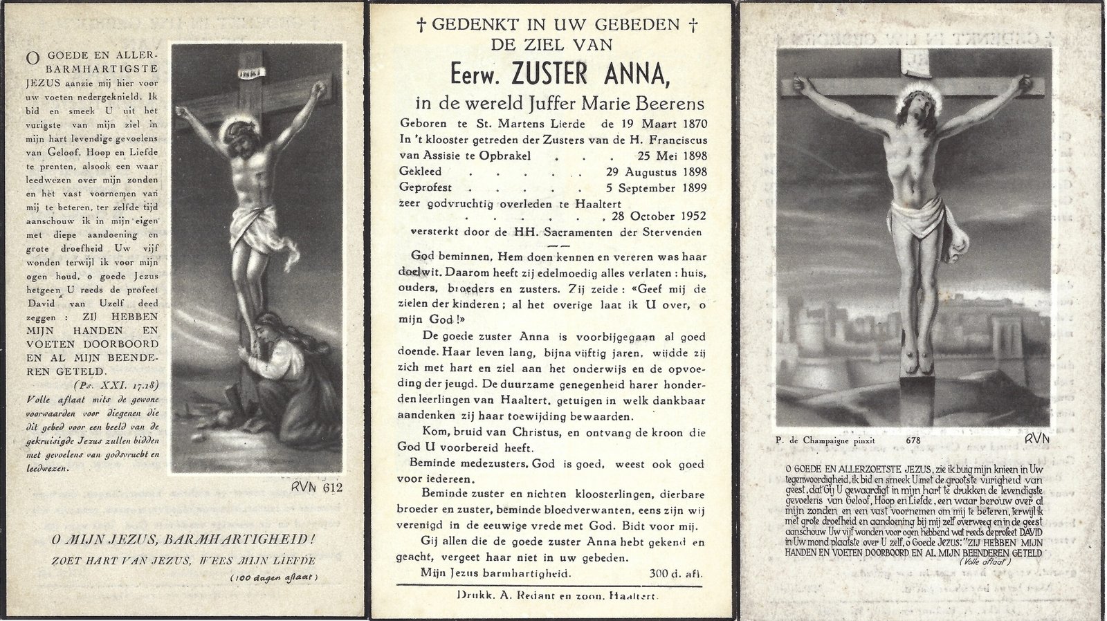 | Beerens Marie, Zuster Anna | Sint-Martens-Lierde | 19/03/1870 | Haaltert | 28/10/1952 |
