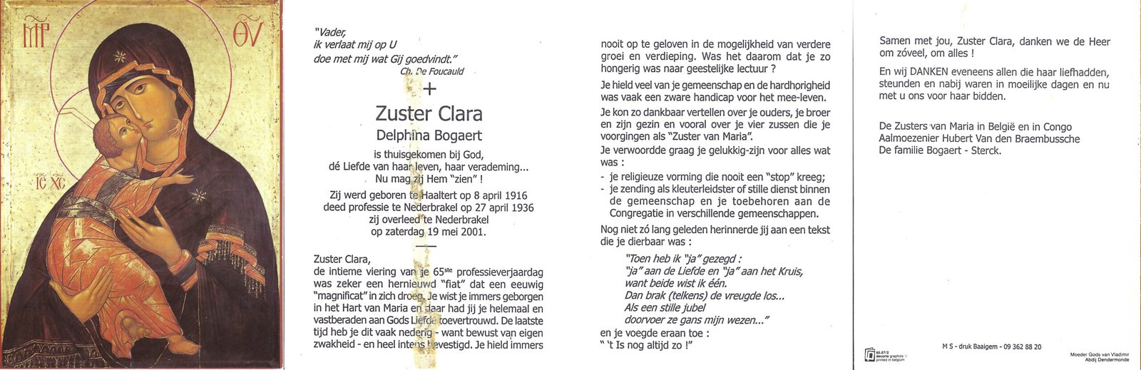 | Bogaert Delphina, Zuster Clara | Haaltert | 08/04/1916 | Nederbrakel | 19/05/2001 |