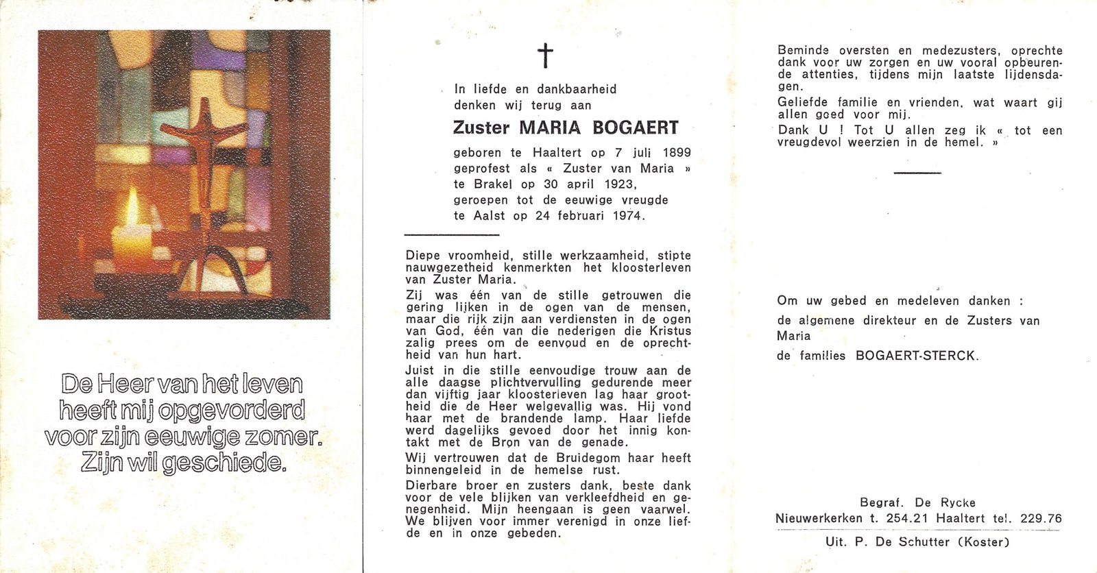 | Bogaert Maria, Zuster Maria | Haaltert | 07/07/1899 | Aalst | 24/02/1974 |