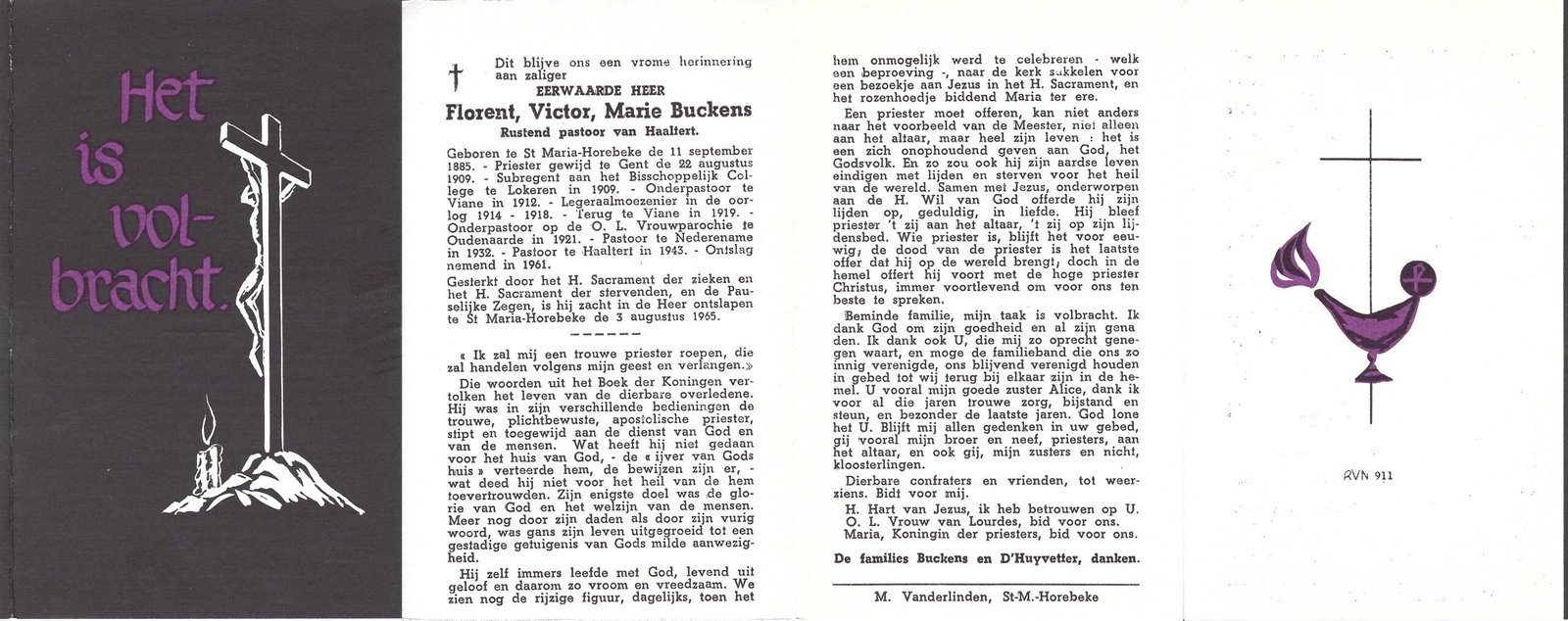 | Buckens Florent, Priester Haaltert | Sint-Maria-Horebeke | 11/09/1885 | Sint-Maria-Horebeke | 03/08/1965 |