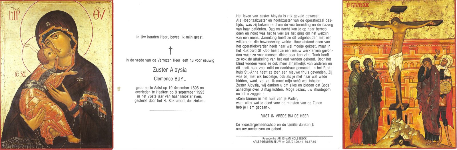 | Buyl Clemence, Zuster Aloysia | Aalst | 19/12/1896 | Haaltert | 09/09/1993 |