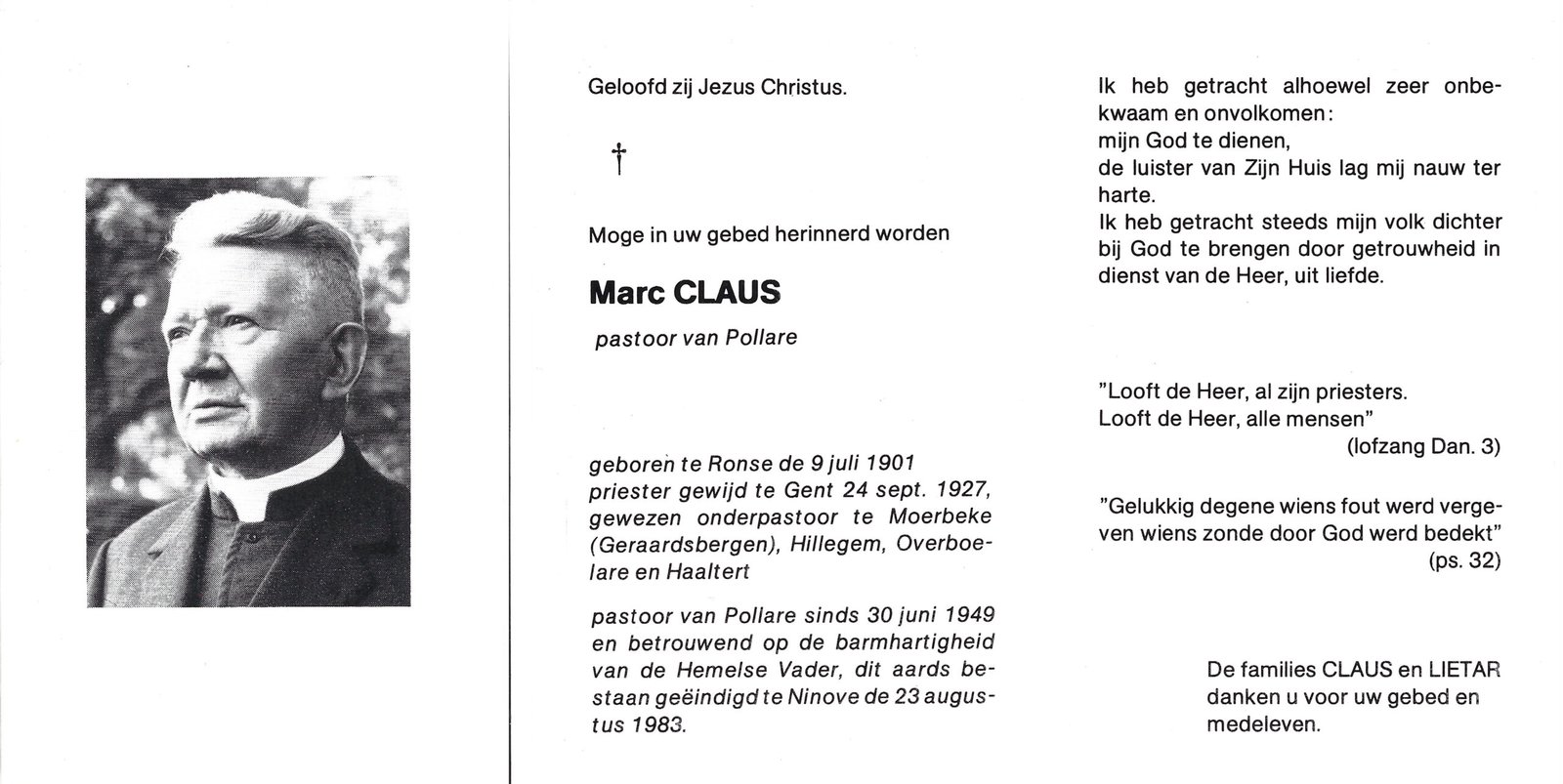 | Claus Marc, Onderpastoor Haaltert | Ronse | 09/07/1901 | Ninove | 23/08/1983 |