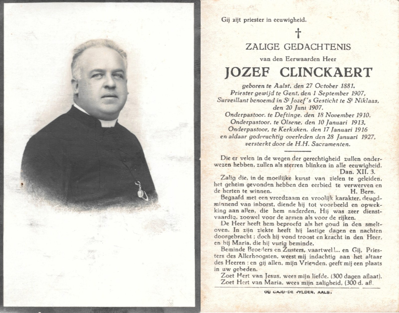 | Clinckaert Jozef, Onderpastoor Kerksken | Aalst | 27/10/1881 | Kerksken | 28/01/1927 |