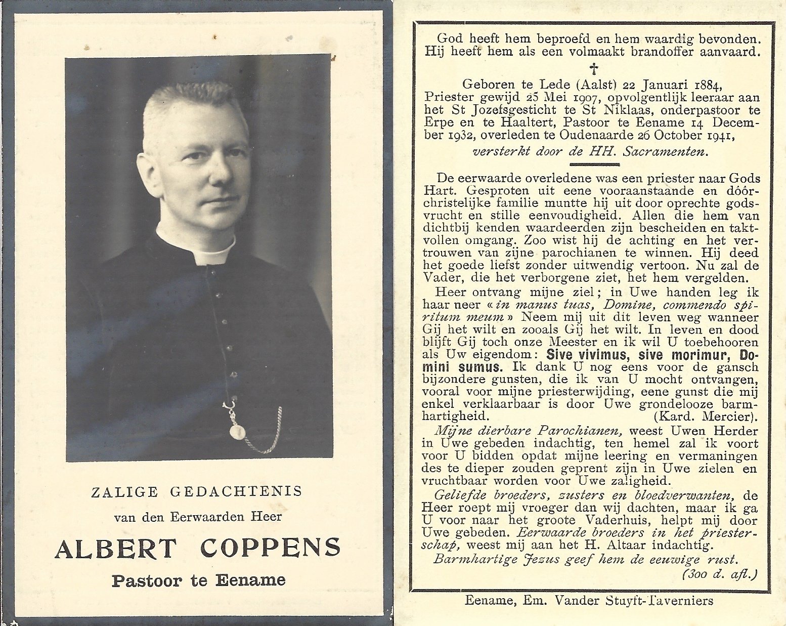 | Coppens Albert, Onderpastoor Haaltert | Lede | 22/01/1884 | Oudenaarde | 26/10/1941 |