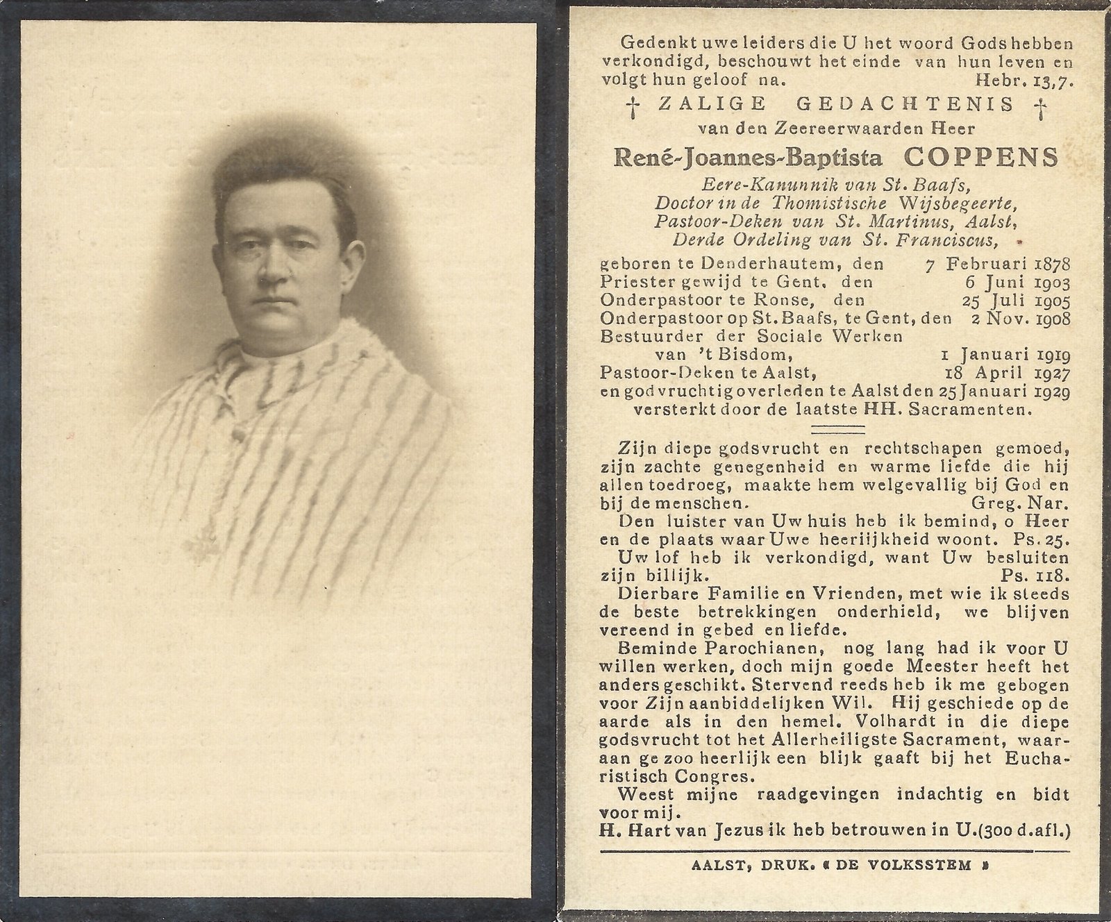 | Coppens René, Priester | Denderhoutem | 07/02/1878 | Aalst | 25/01/1929 |