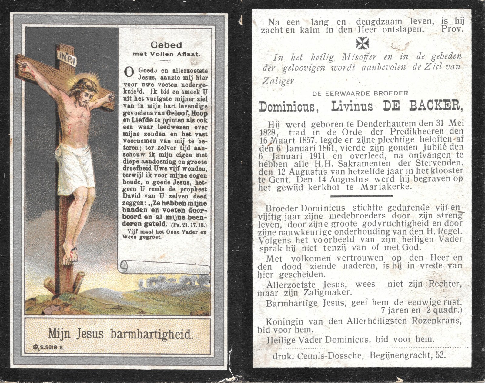 | De Backer Livinus, Broeder Dominicus | Denderhoutem | 31/05/1928 | Gent | 12/08/1911 |