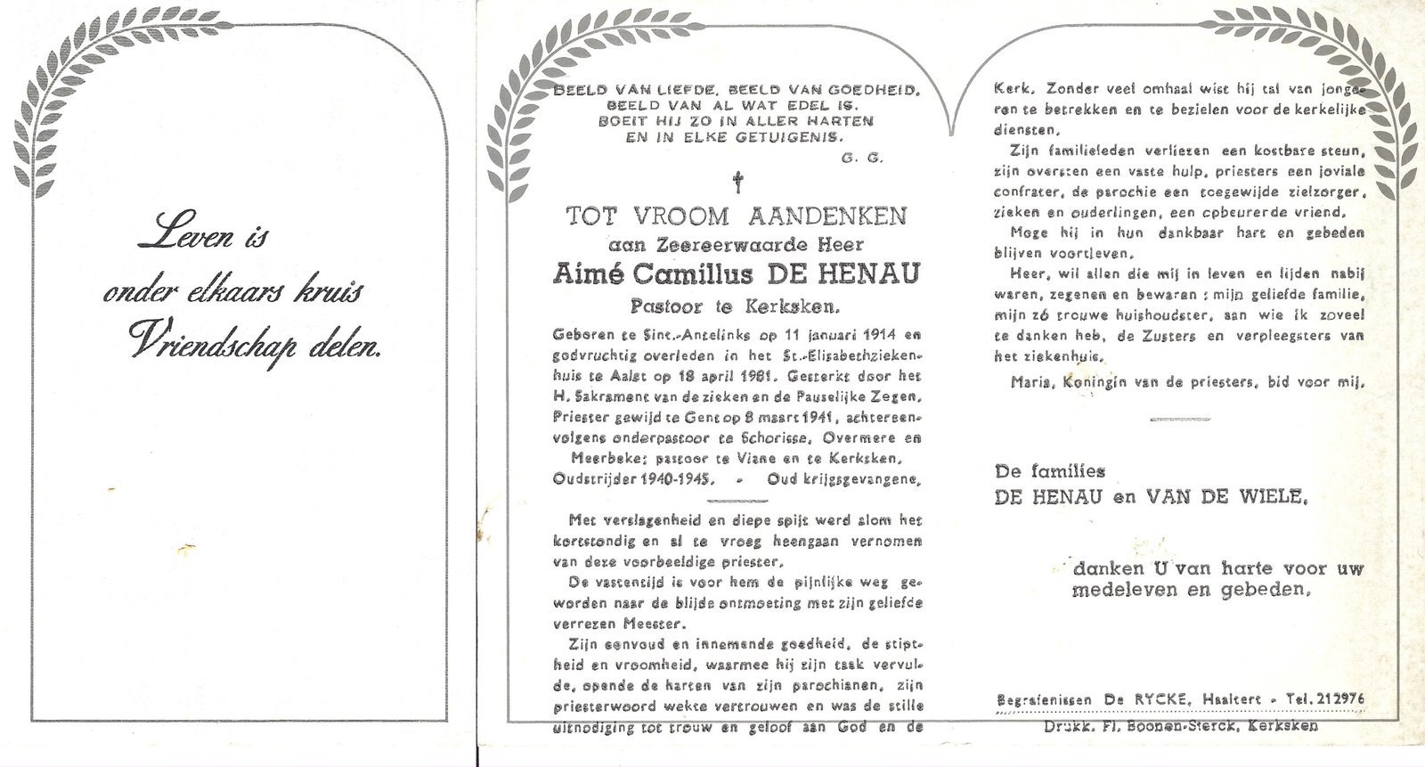 | De Henau Aimé, Priester Kerksken | Sint-Antelinks | 11/01/1914 | Aalst | 18/04/1981 |