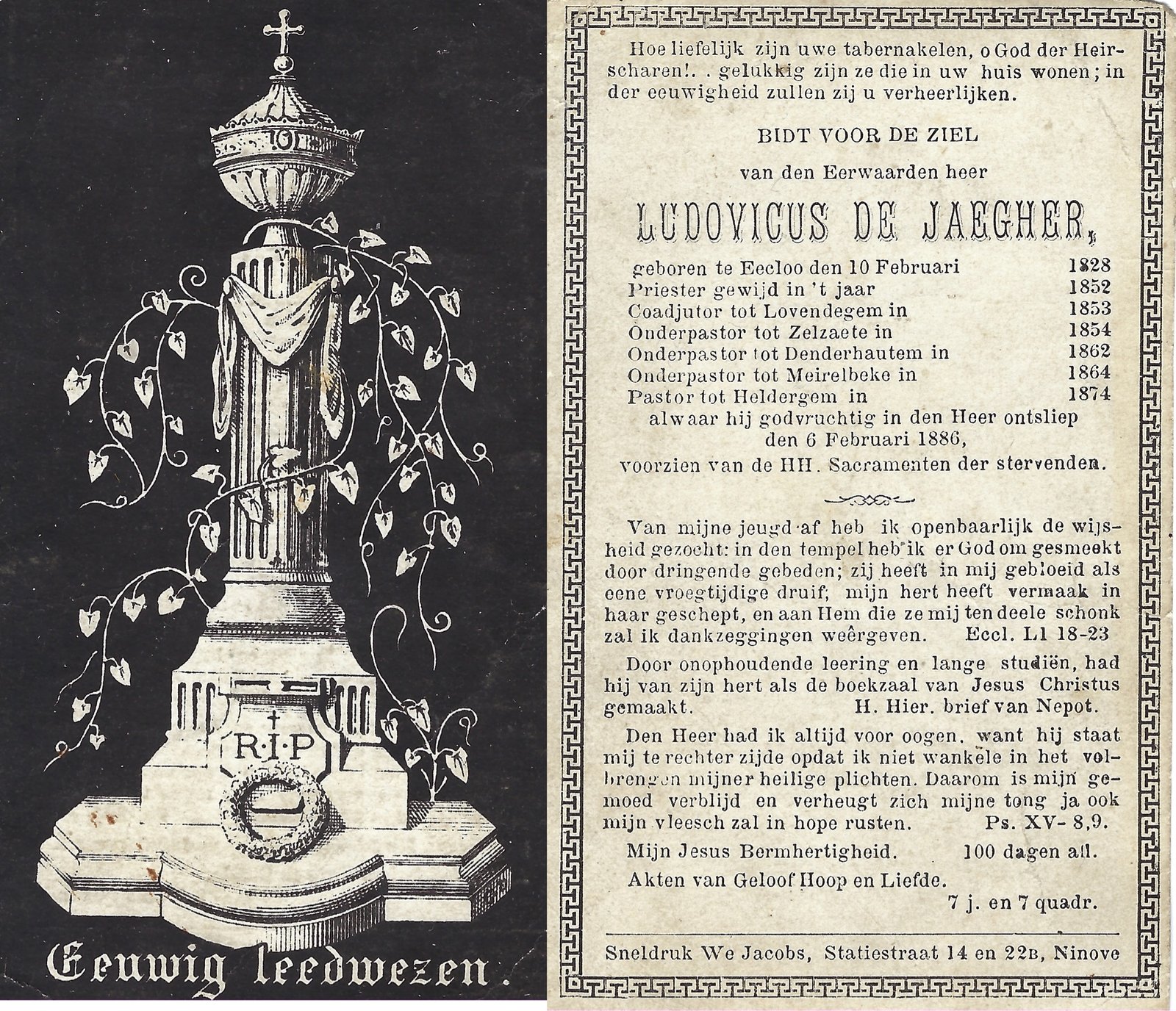| De Jaegher Ludovicus, Priester Heldergem | Eeklo | 10/02/1828 | Heldergem | 06/02/1886 |