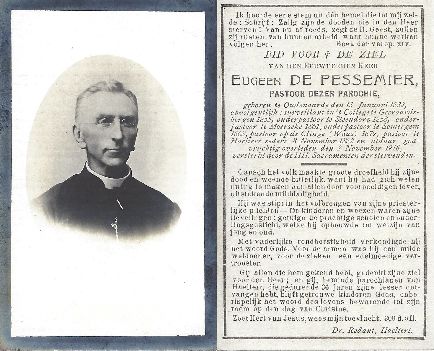 | De Pessemier Eugeen, Priester Haaltert | Oudenaarde | 13/01/1832 | Haaltert | 02/11/1918 |
