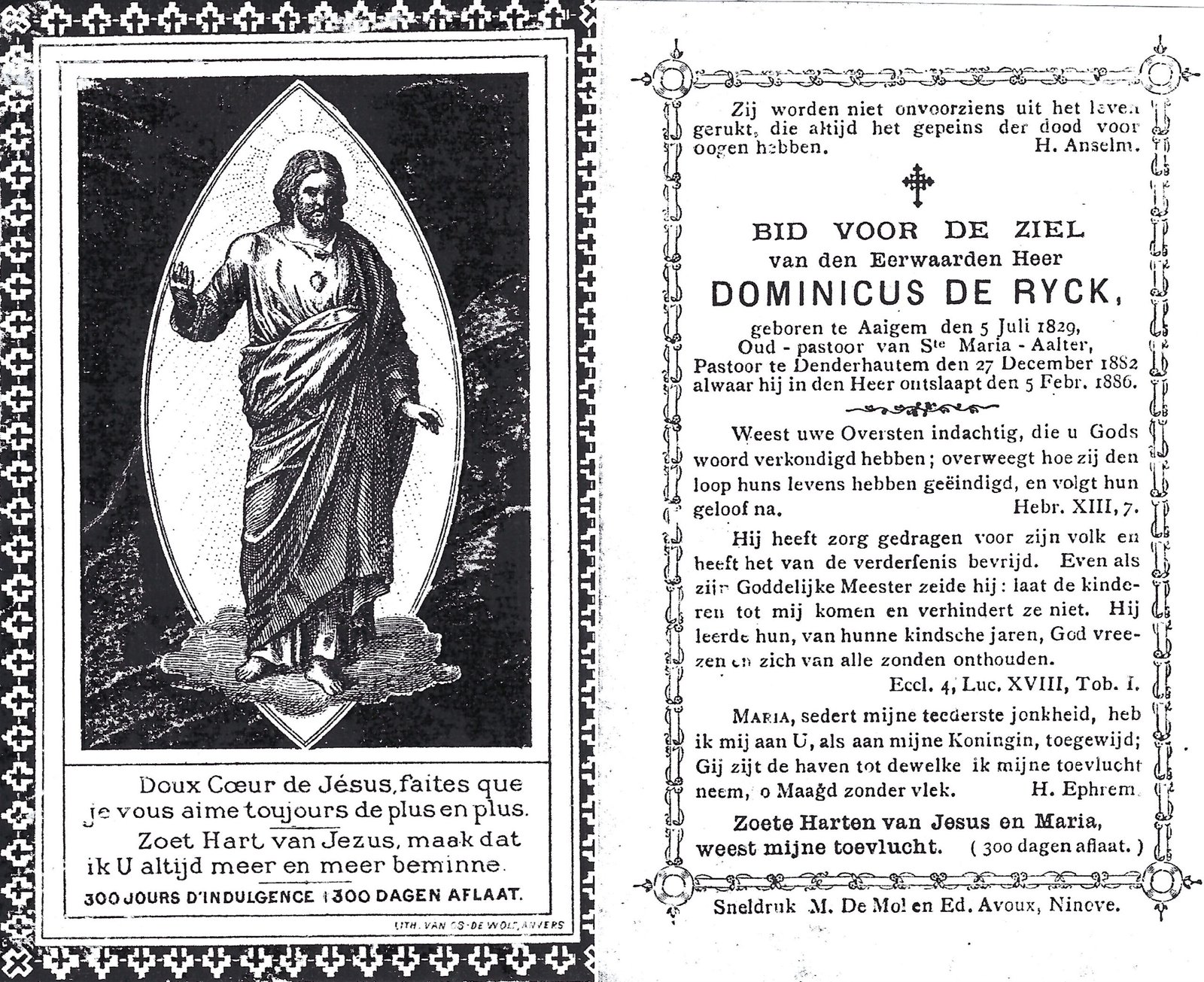 | De Ryck Dominicus, Priester Denderhoutem | Aaigem | 05/07/1829 | Denderhoutem | 05/02/1886 |