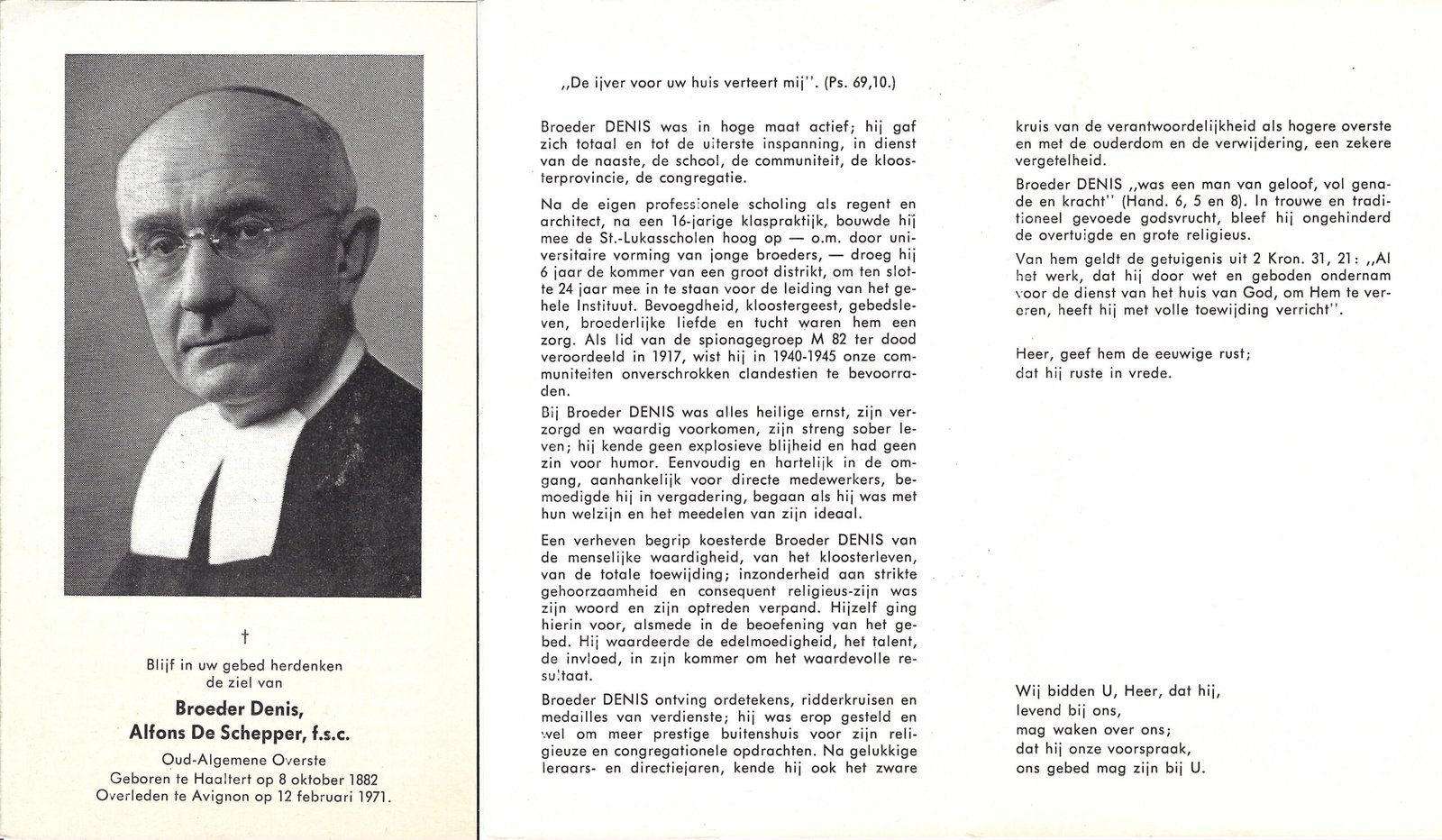 | De Schepper Alfons, Broeder Denis | Haaltert | 08/10/1882 | Avignon | 12/02/1971 |
