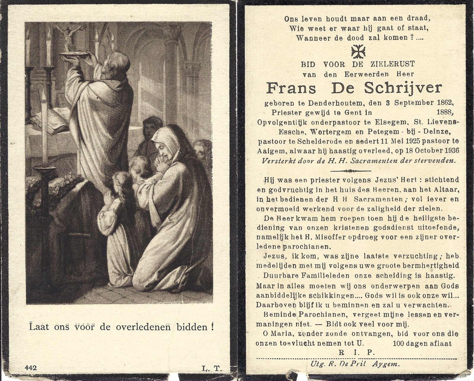 | De Schrijver Frans, Priester | Denderhoutem | 03/09/1862 | Aaigem | 18/10/1936 |