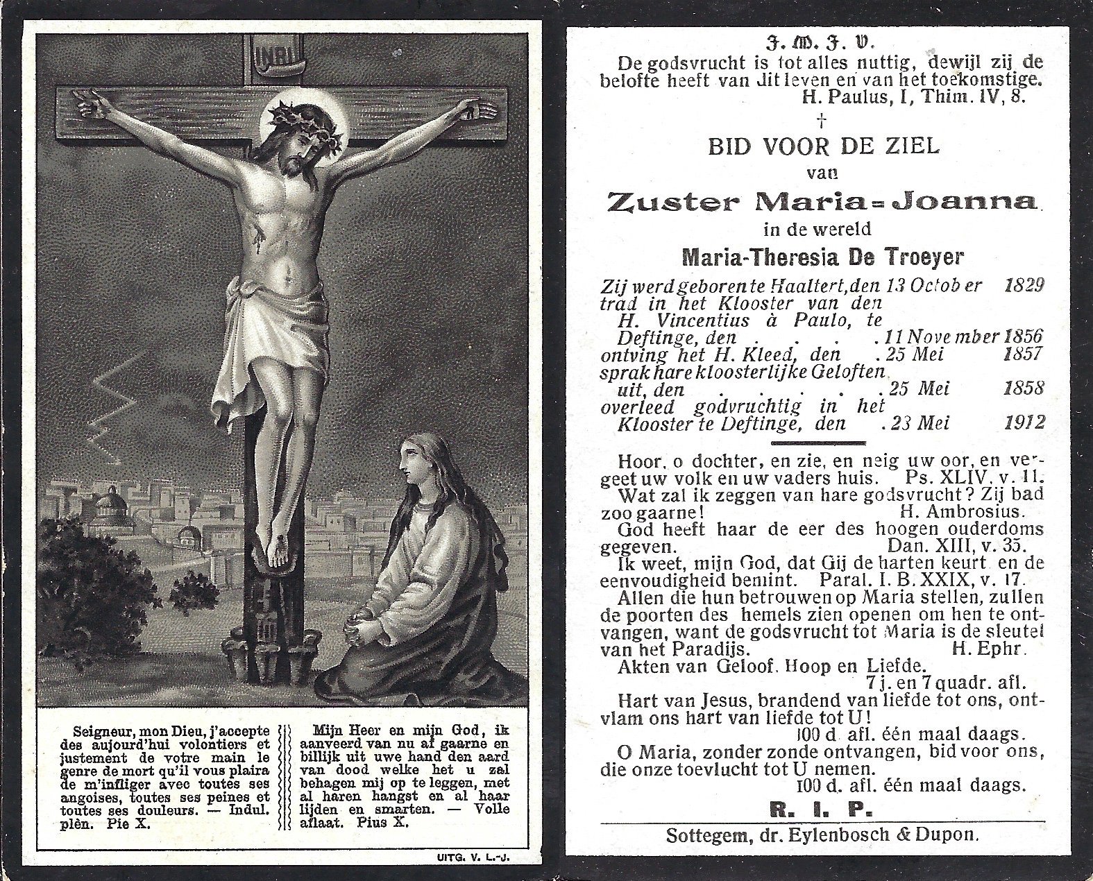 | De Troeyer Maria-Thérèsia, Zuster Maria-Joanna | Haaltert | 13/10/1829 | Deftinge | 23/05/1912 |