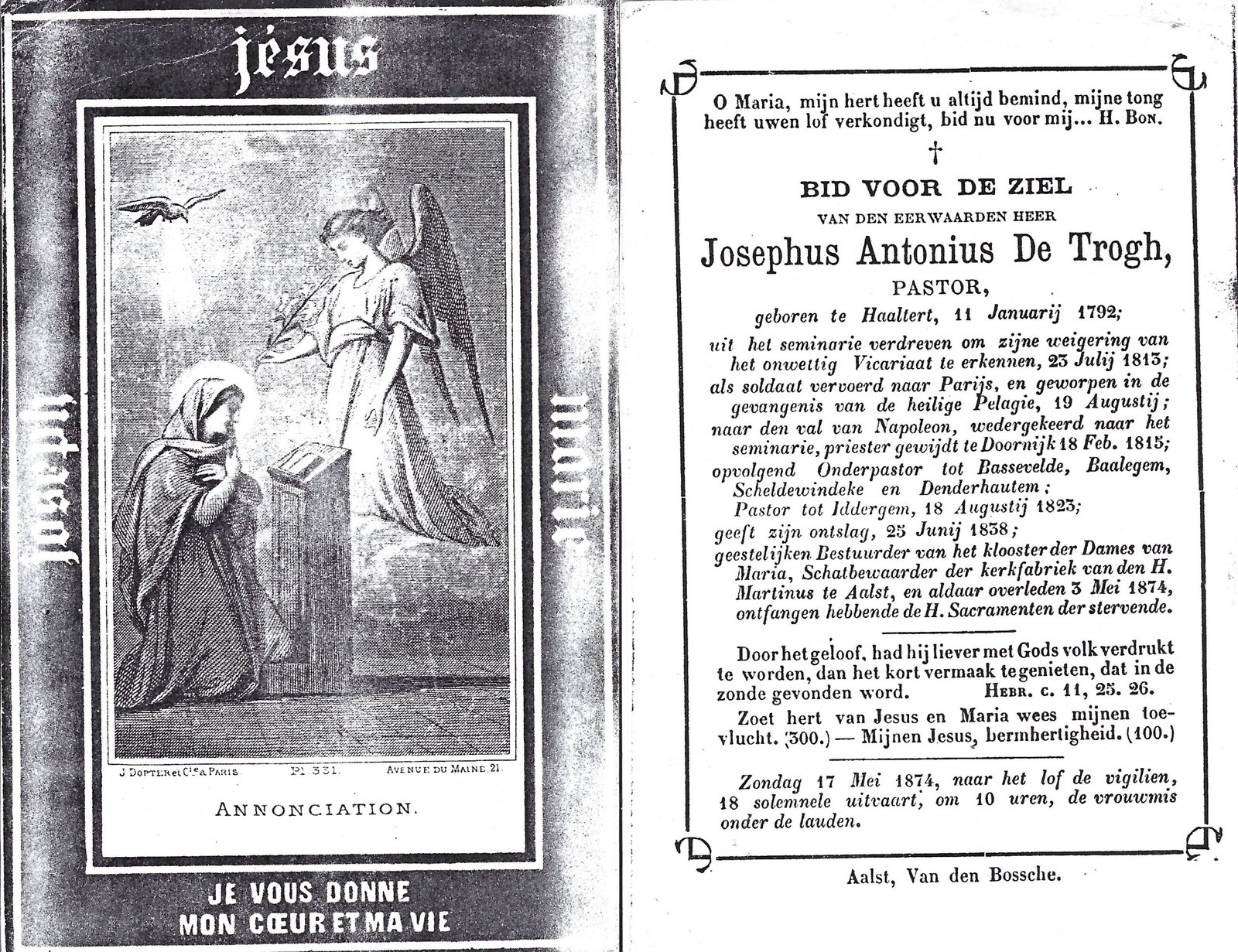 | De Trogh Josephus, Onderpastoor Denderhoutem | Haaltert | 11/01/1792 | Aalst | 03/05/1874 |