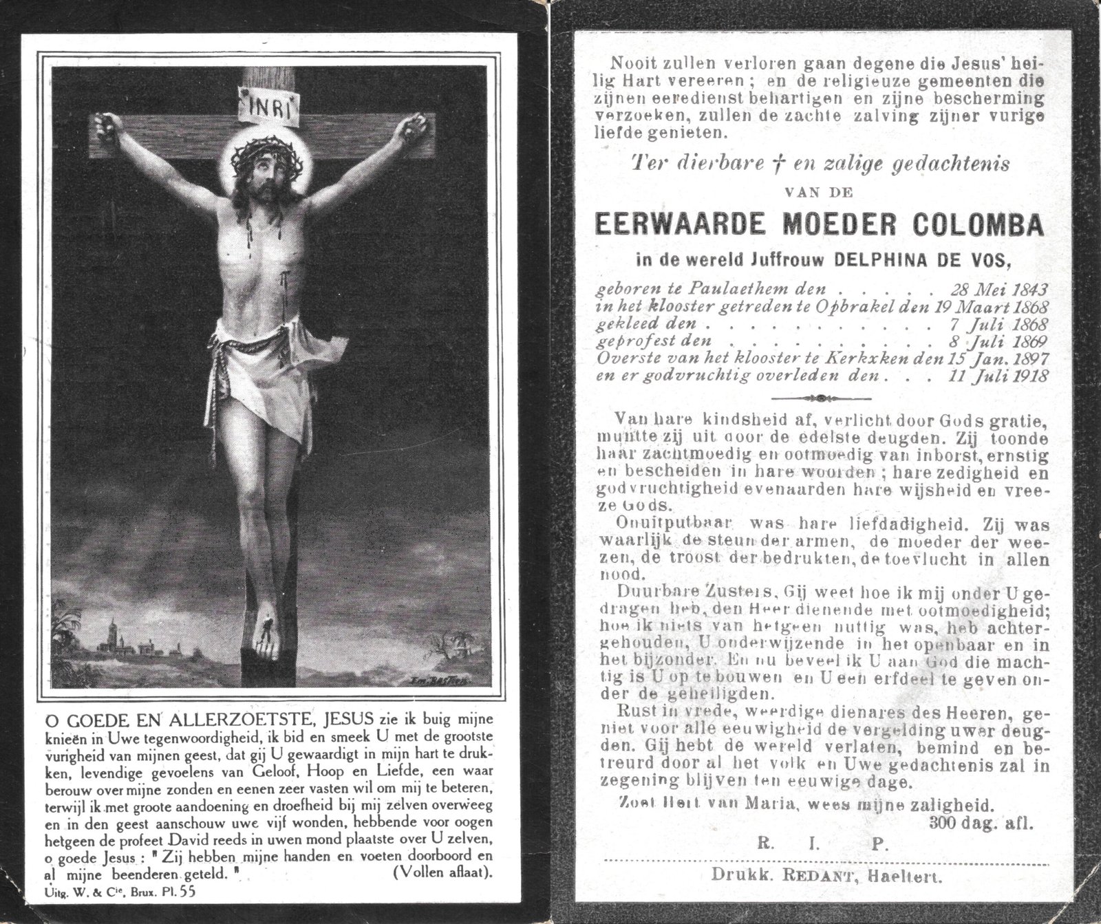 | De Vos Delphina, Moeder Colomba | Paulatem | 28/05/1843 | Kerksken | 11/07/1918 |