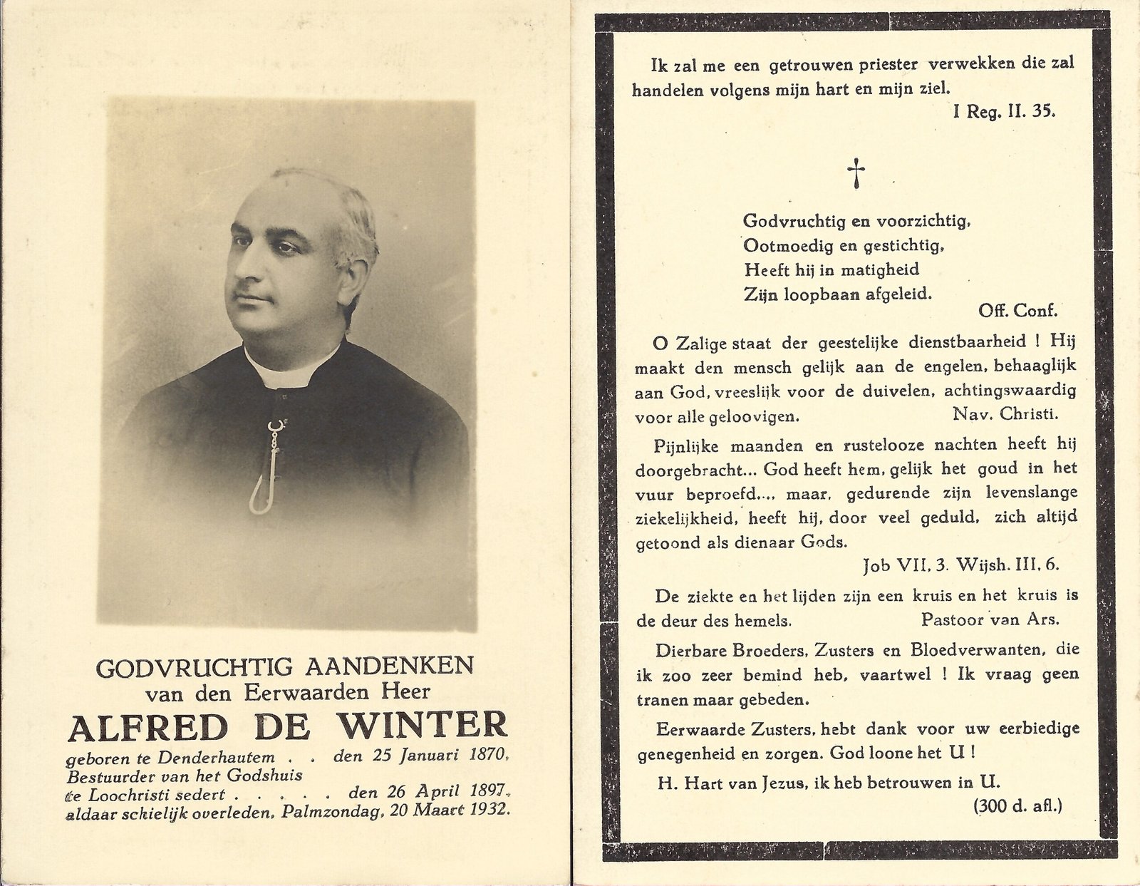 | De Winter Alfred, Priester | Denderhoutem | 25/01/1870 | Lochristi | 20/03/1932 |