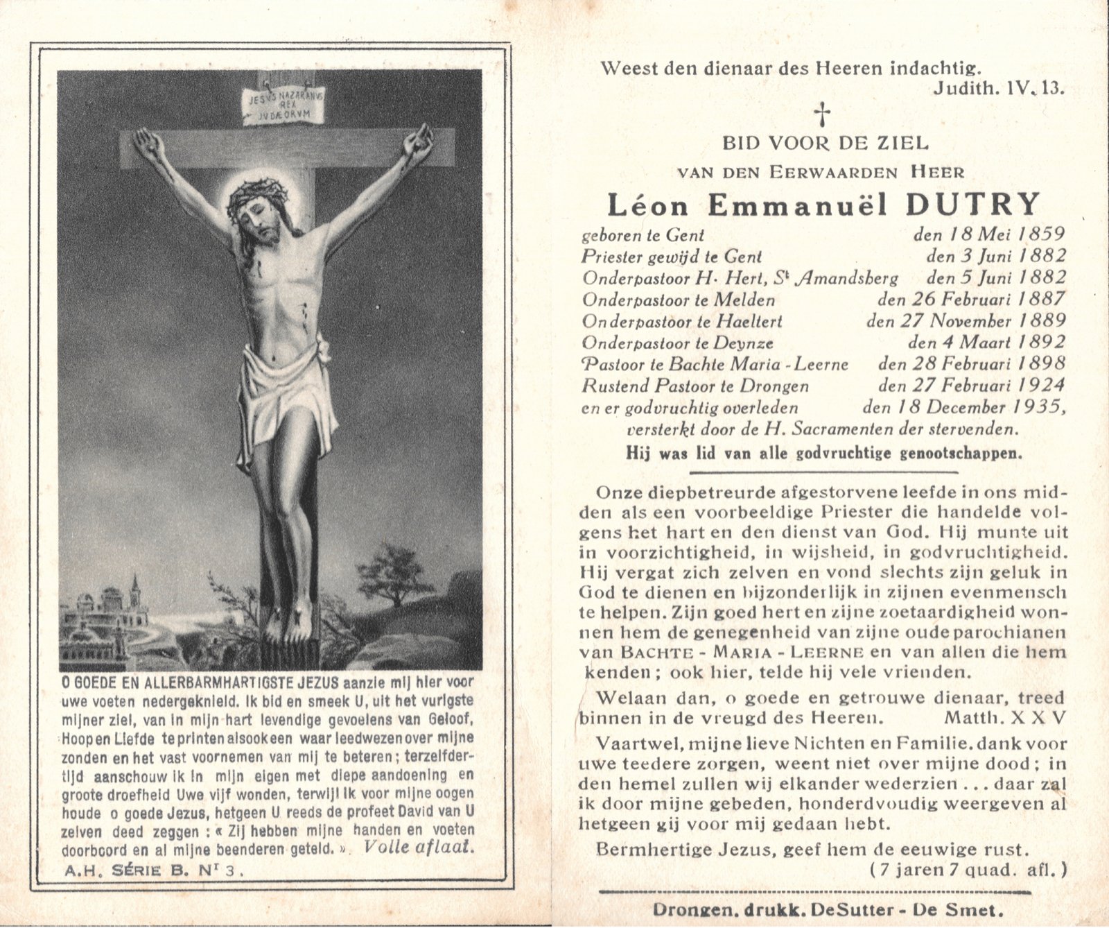 | Dutry Léon, Onderpastoor Haaltert | Gent | 18/05/1859 | Drongen | 18/12/1935 |