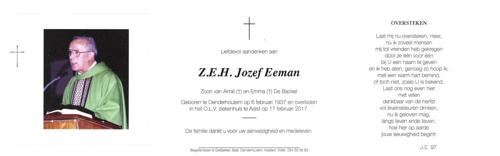 | Eeman Jozef, Priester | Denderhoutem | 06/02/1937 | Aalst | 17/02/2017 |