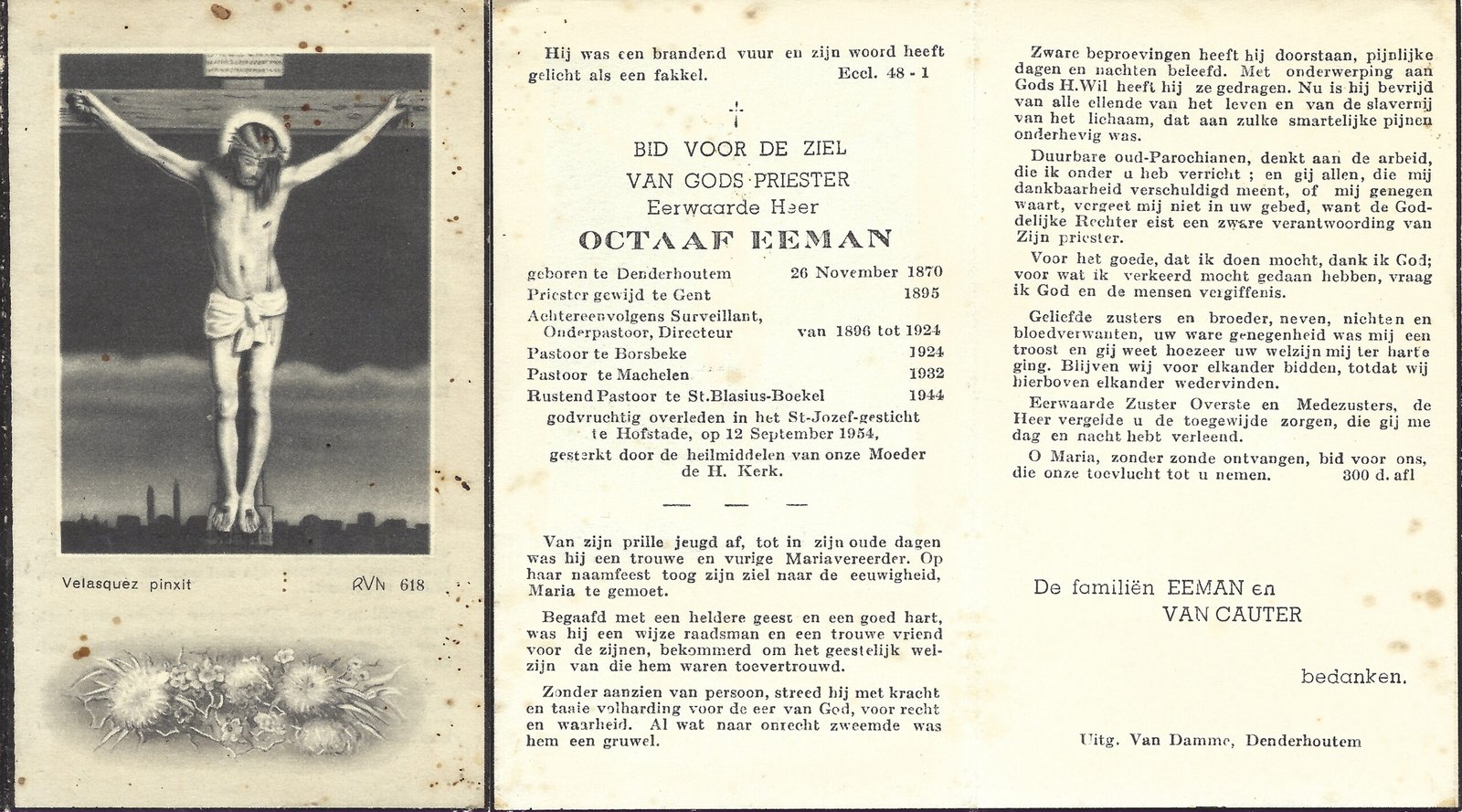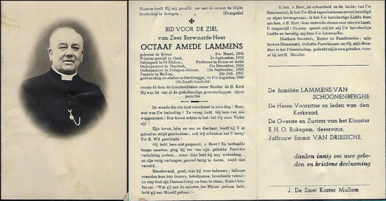 | Eeman Octaaf, Priester | Denderhoutem | 26/11/1870 | Hofstade | 12/09/1954 |