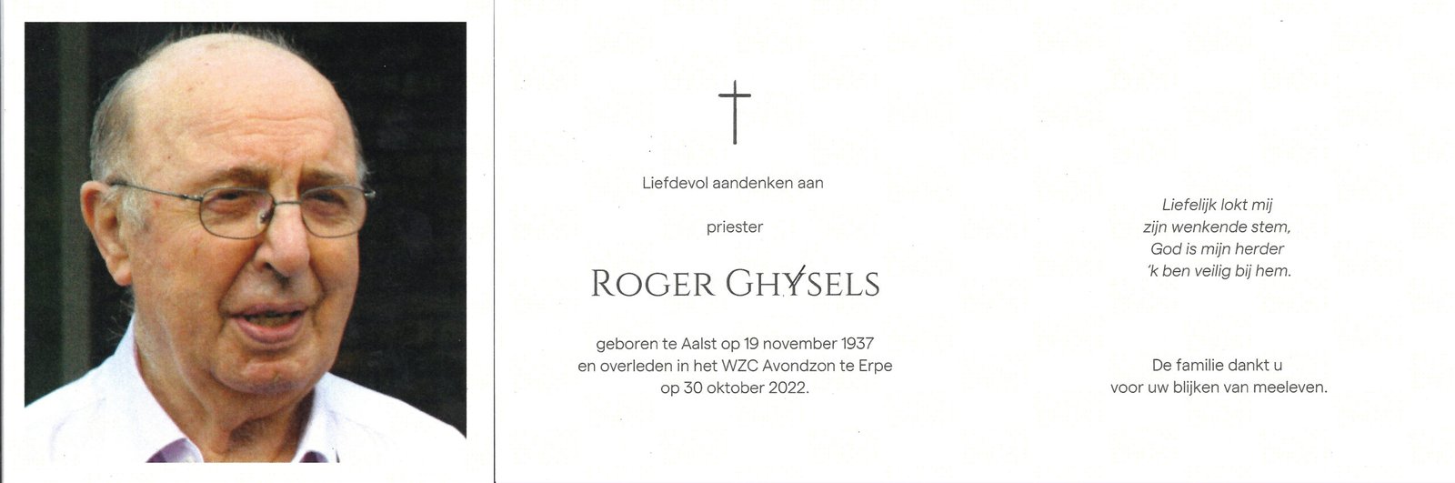 | Ghijsels Roger, Priester | Aalst | 19/11/1937 | Erpe | 30/10/1922 |