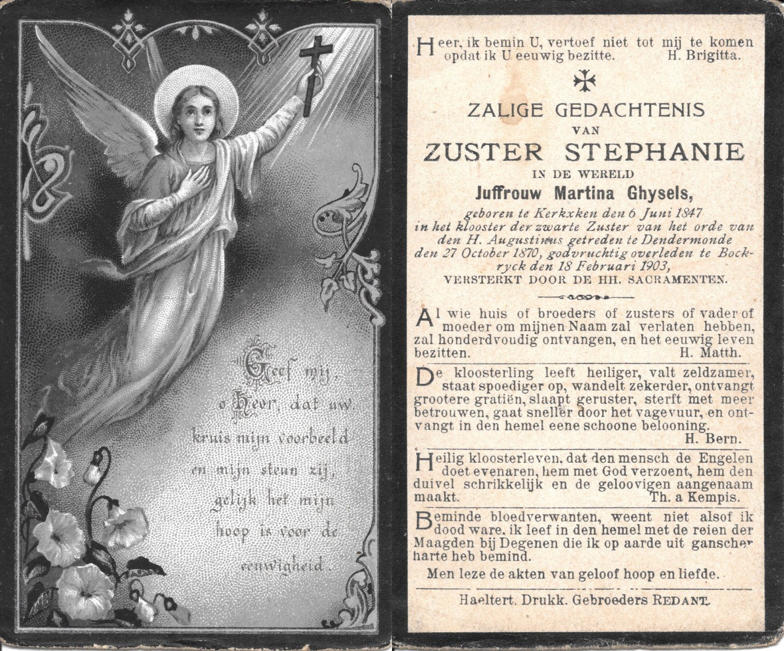 | Ghysels Martina, Zuster Stephanie | Kerksken | 06/06/1847 | Bokrijk | 18/02/1903 |