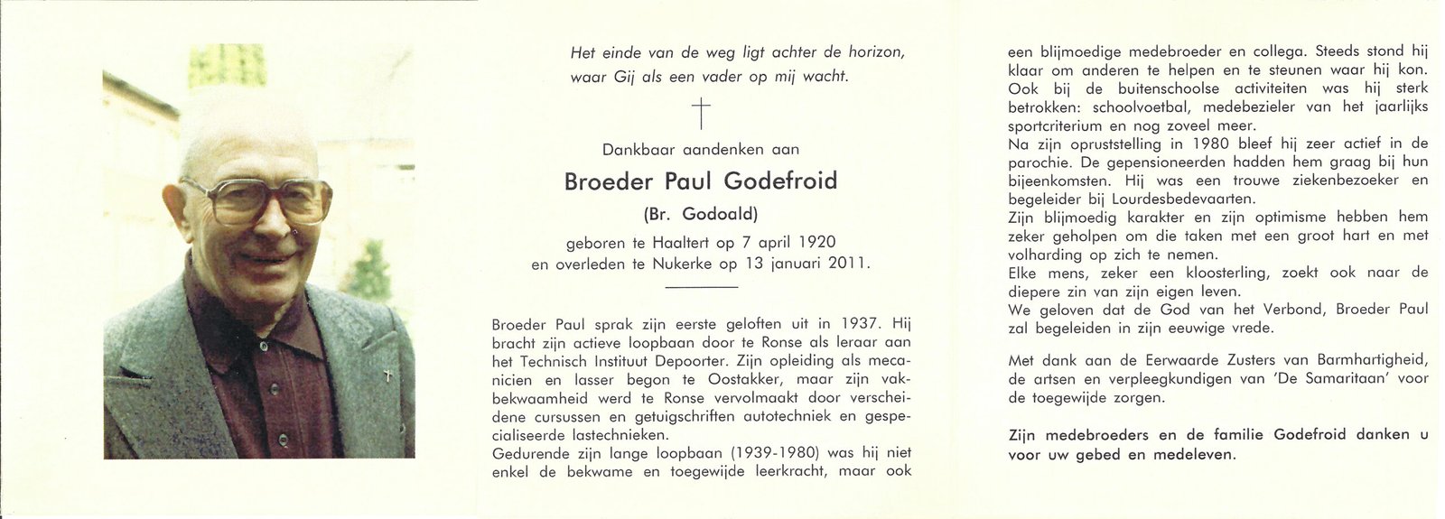 | Godefroid Paul, Broeder Godoald | Haaltert | 07/04/1920 | Nukerke | 13/01/2011 |