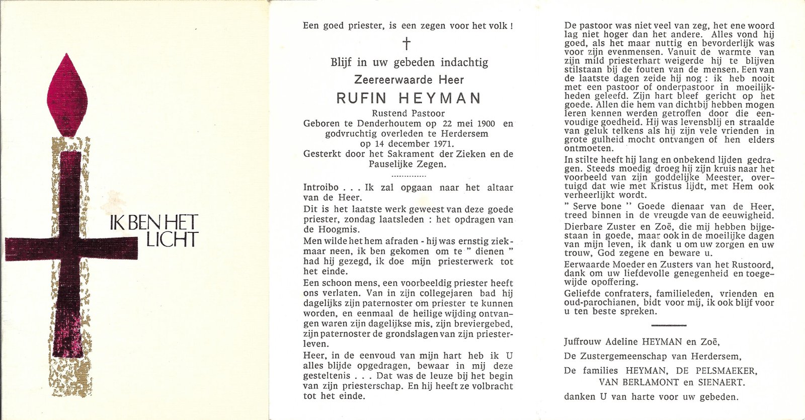 | Heyman Rufin, Priester | Denderhoutem | 22/05/1900 | Herdersem | 14/12/1971 |