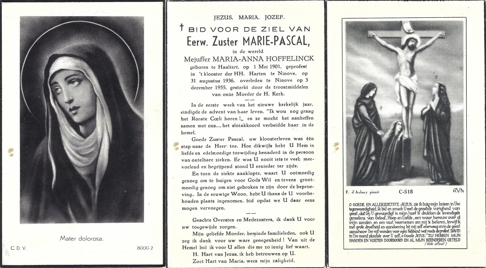 | Hoffelinck Maria-Anna, Zuster Marie-Pascal | Haaltert | 01/05/1901 | Ninove | 03/12/1955 |