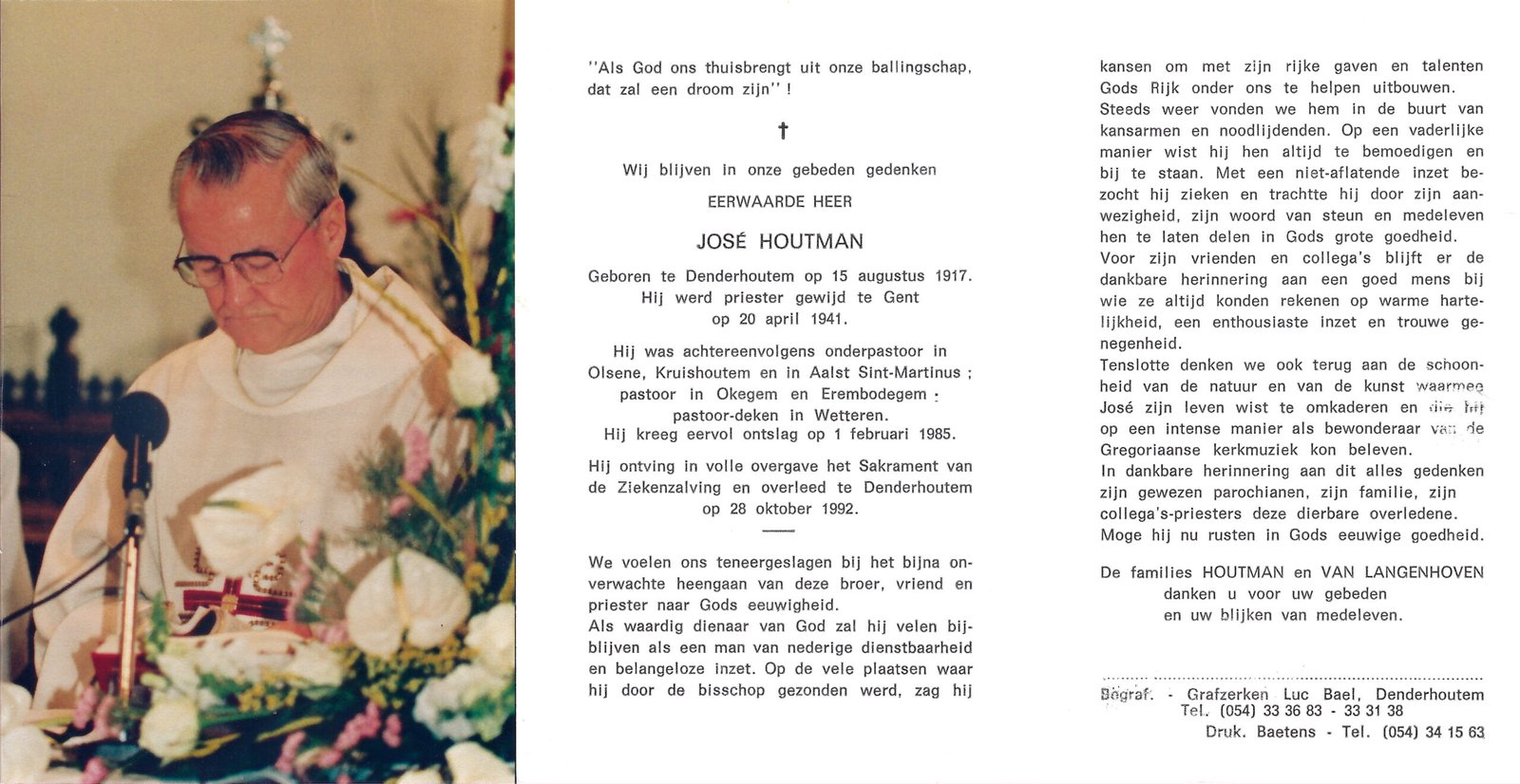 | Houtman José, Priester | Denderhoutem | 15/08/1917 | Denderhoutem | 28/10/1992 |