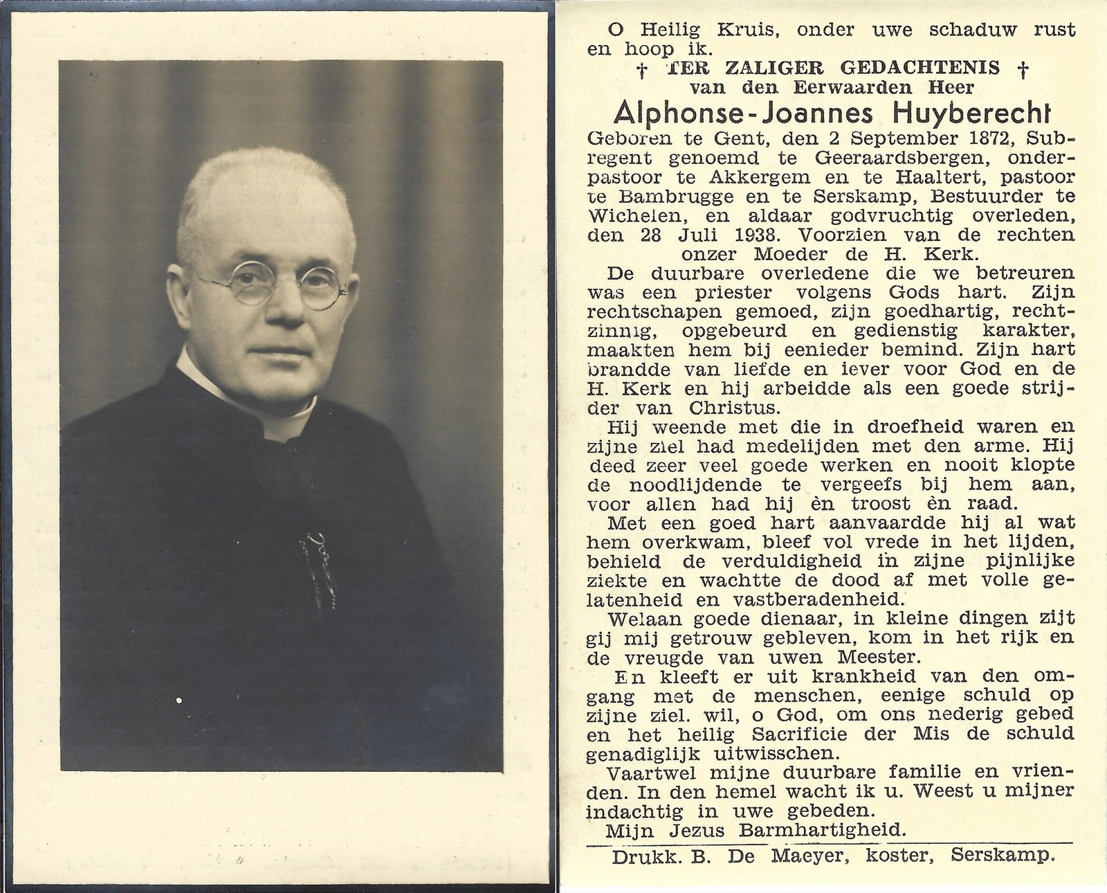 | Huyberecht Alphonse, Onderpastoor Haaltert | Gent | 02/09/1872 | Wichelen | 28/07/1938 |