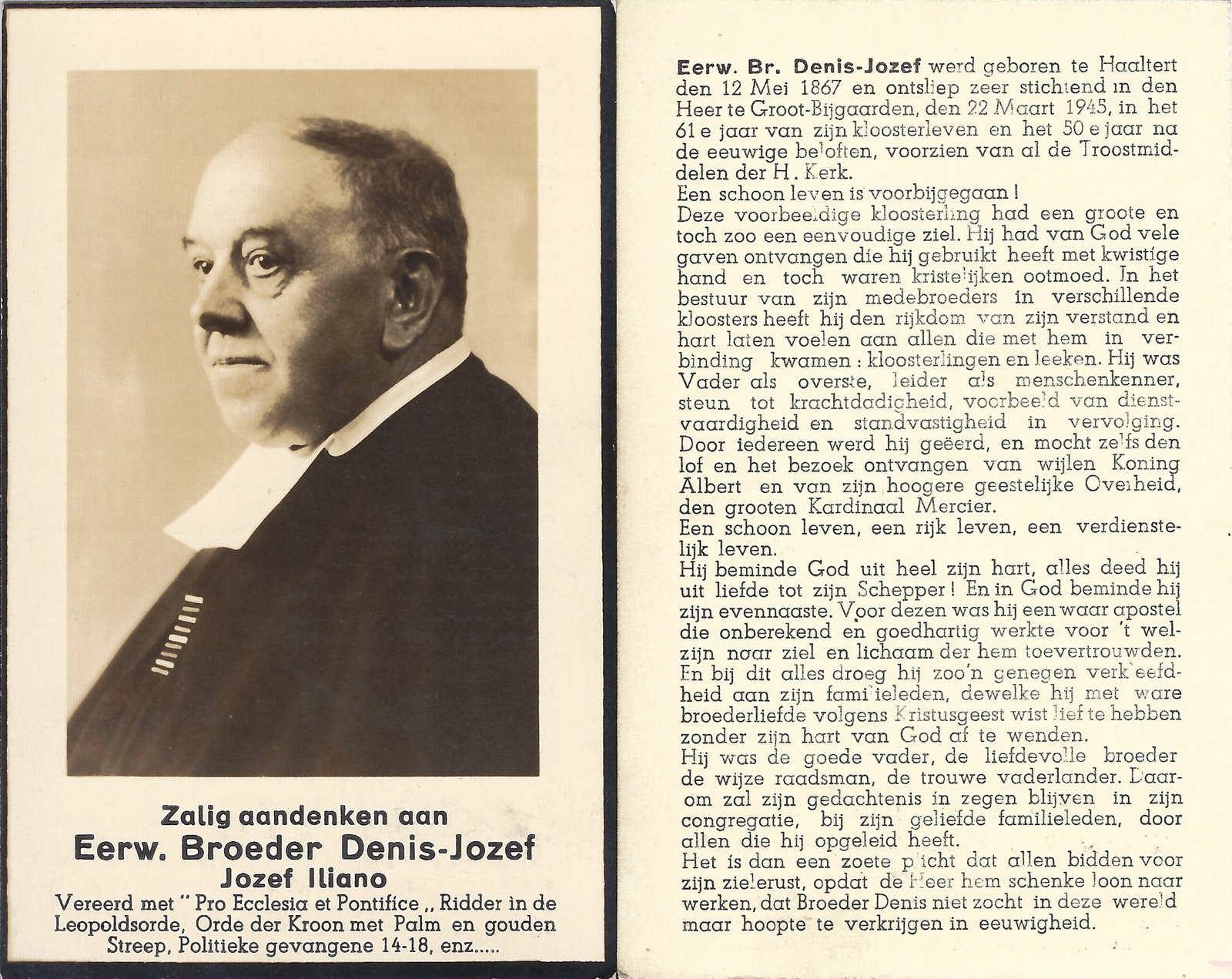 | Iliano Jozef, Broeder Denis-Jozef | Haaltert | 12/05/1867 | Groot-Bijgaarden | 22/03/1945 |