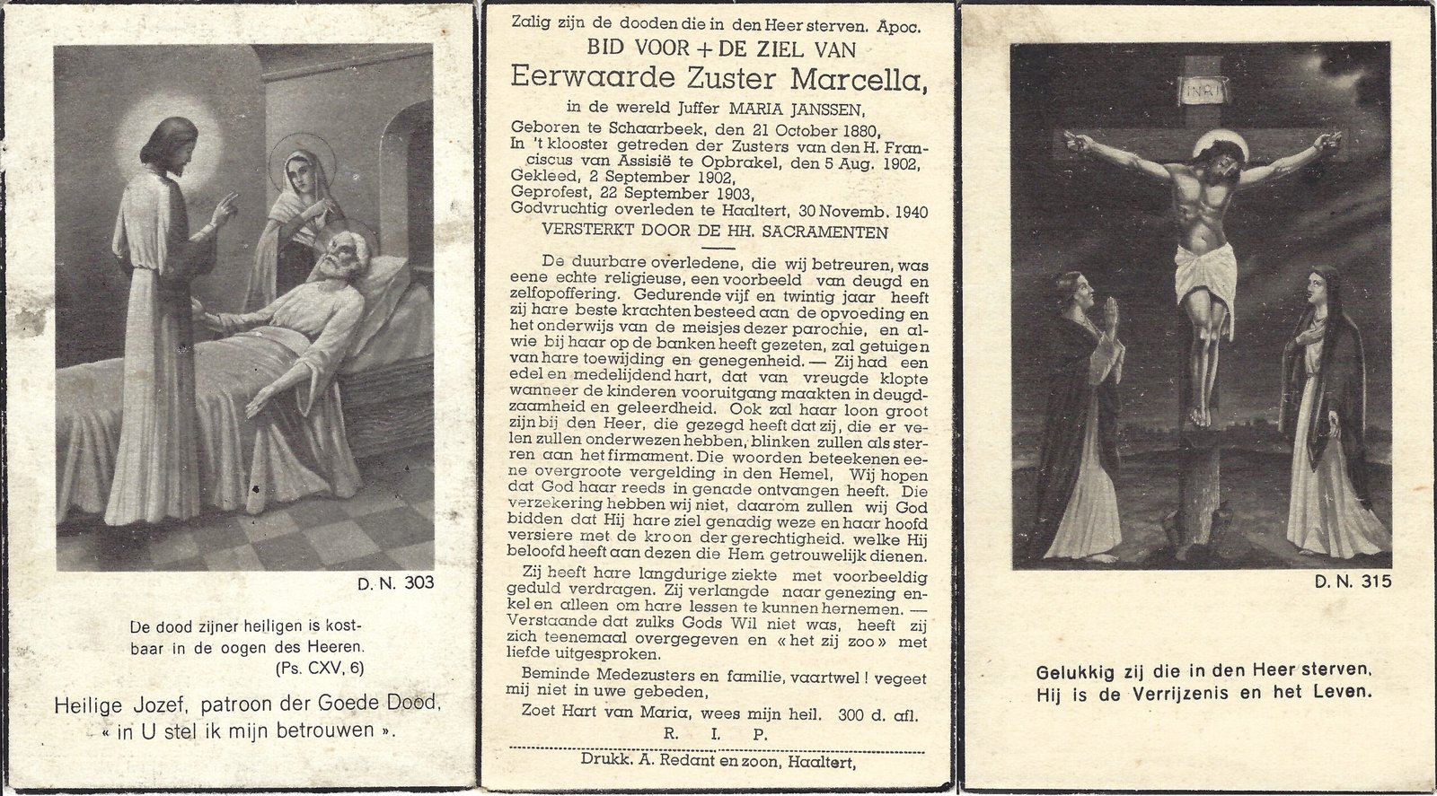| Janssen Maria, Zuster Marcella | Schaarbeek | 21/10/1880 | Haaltert | 30/11/1940 |
