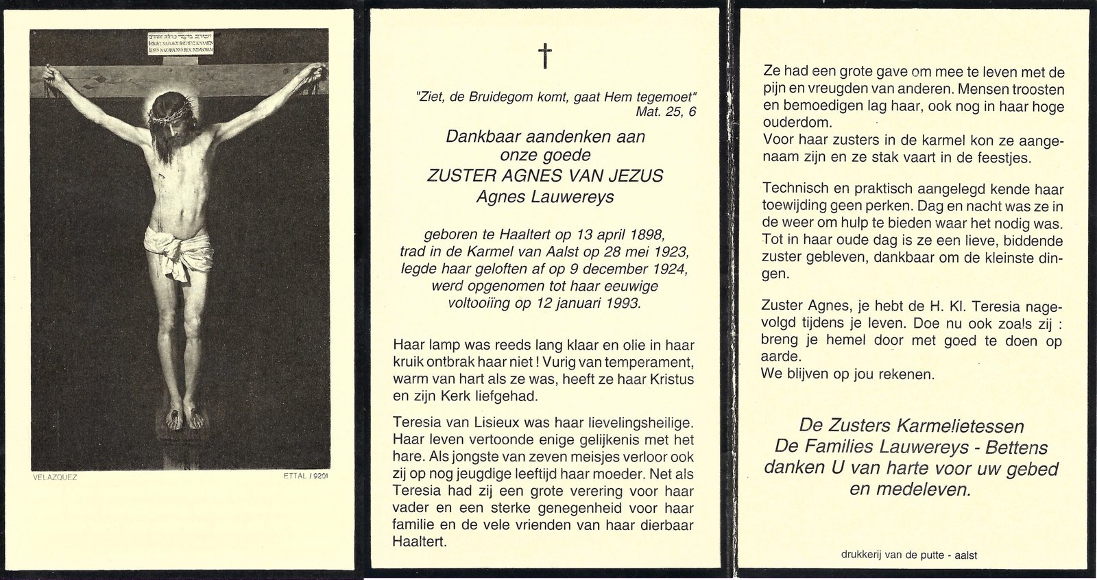 | Lauwereys Agnes , Zuster Agnes | Haaltert | 13/04/1898 | Aalst | 12/01/1993 |