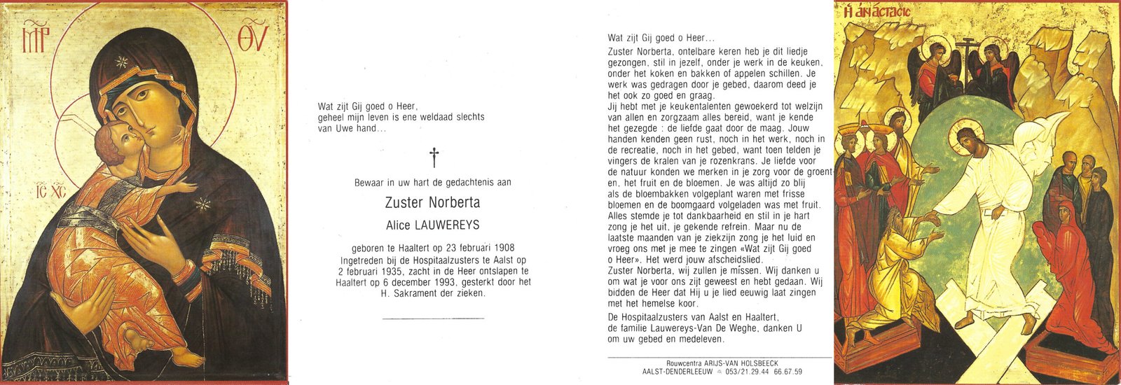 | Lauwereys Alice, Zuster Norberta | Haaltert | 23/02/1908 | Haaltert | 06/12/1993 |