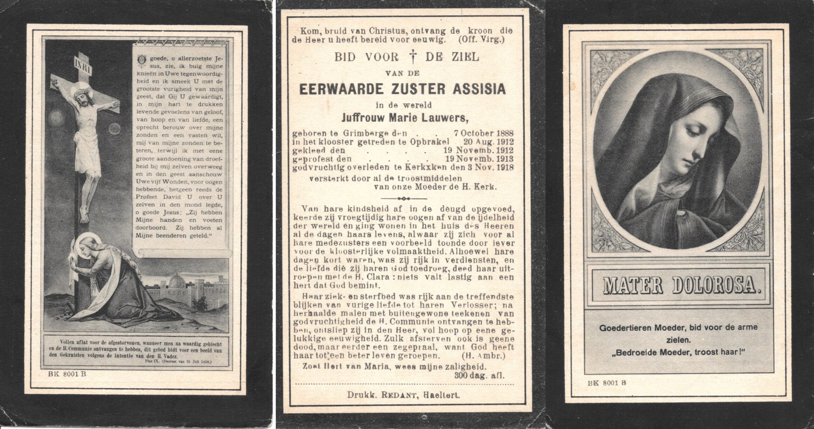 | Lauwers Marie, Zuster Assisia | Grimbergen | 07/10/1888 | Kerksken | 03/11/1918 |