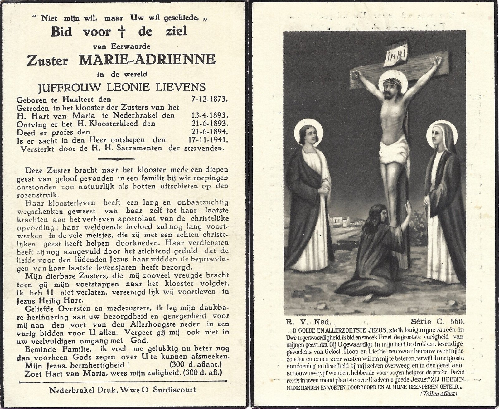 | Lievens Leonie, Zuster Marie-Adrienne | Haaltert | 07/12/1873 | Nederbrakel | 17/11/1941 |