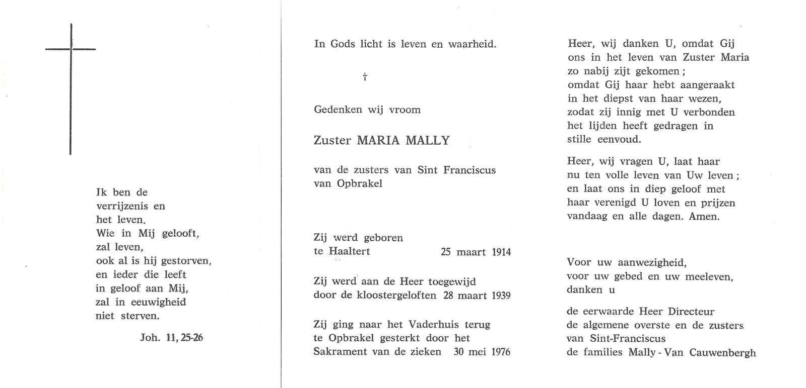 | Mally Maria, Zuster Maria | Haaltert | 25/03/1914 | Opbrakel | 30/05/1976 |