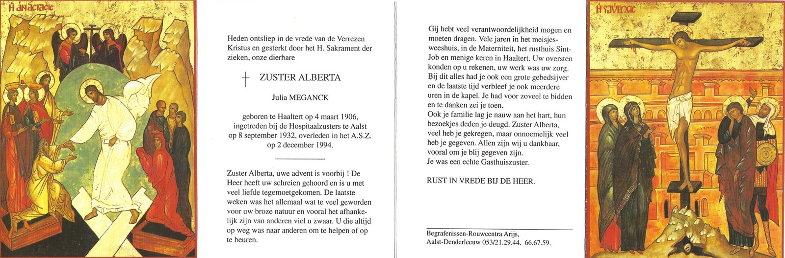 | Meganck Julia, Zuster Alberta | Haaltert | 04/03/1906 | Aalst | 02/12/1994 |