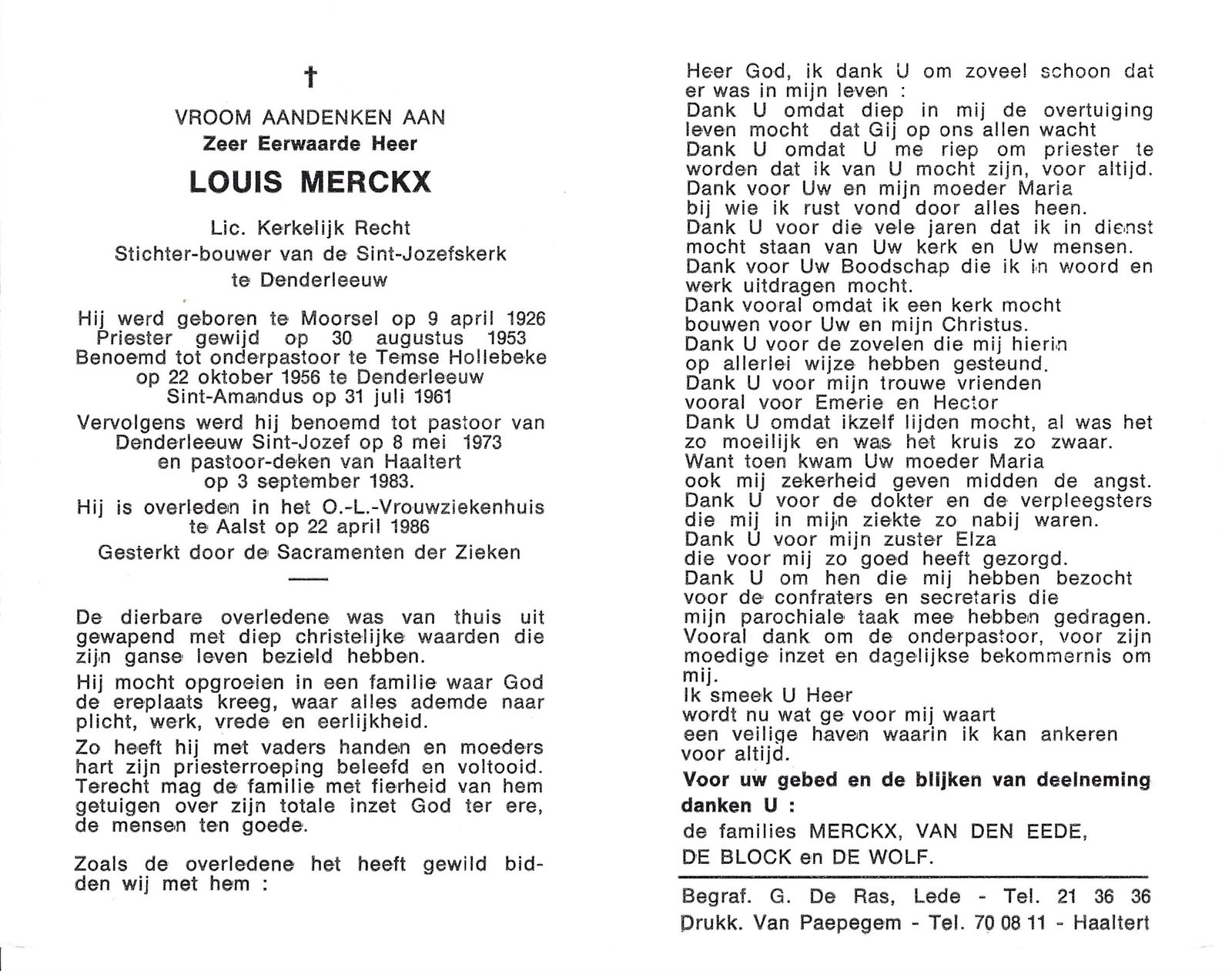 | Merckx Louis, Priester-Deken Haaltert | Moorsel | 09/04/1926 | Aalst | 22/04/1986 |