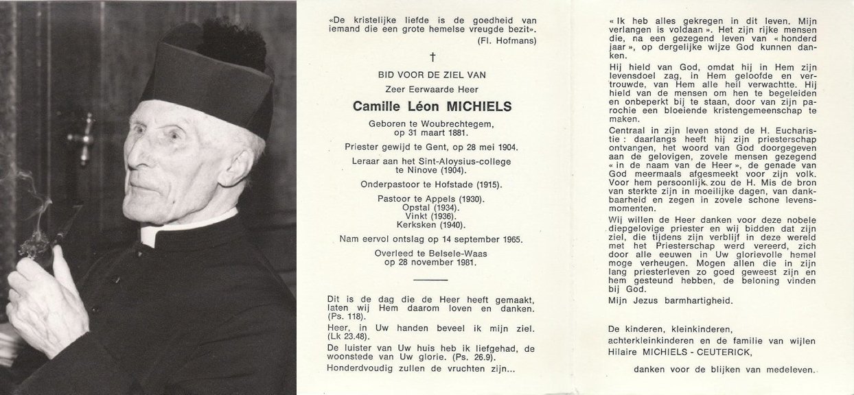 | Michiels Camille, Priester Kerksken | Woubrechtegem | 31/03/1881 | Belsele | 28/11/1981 |