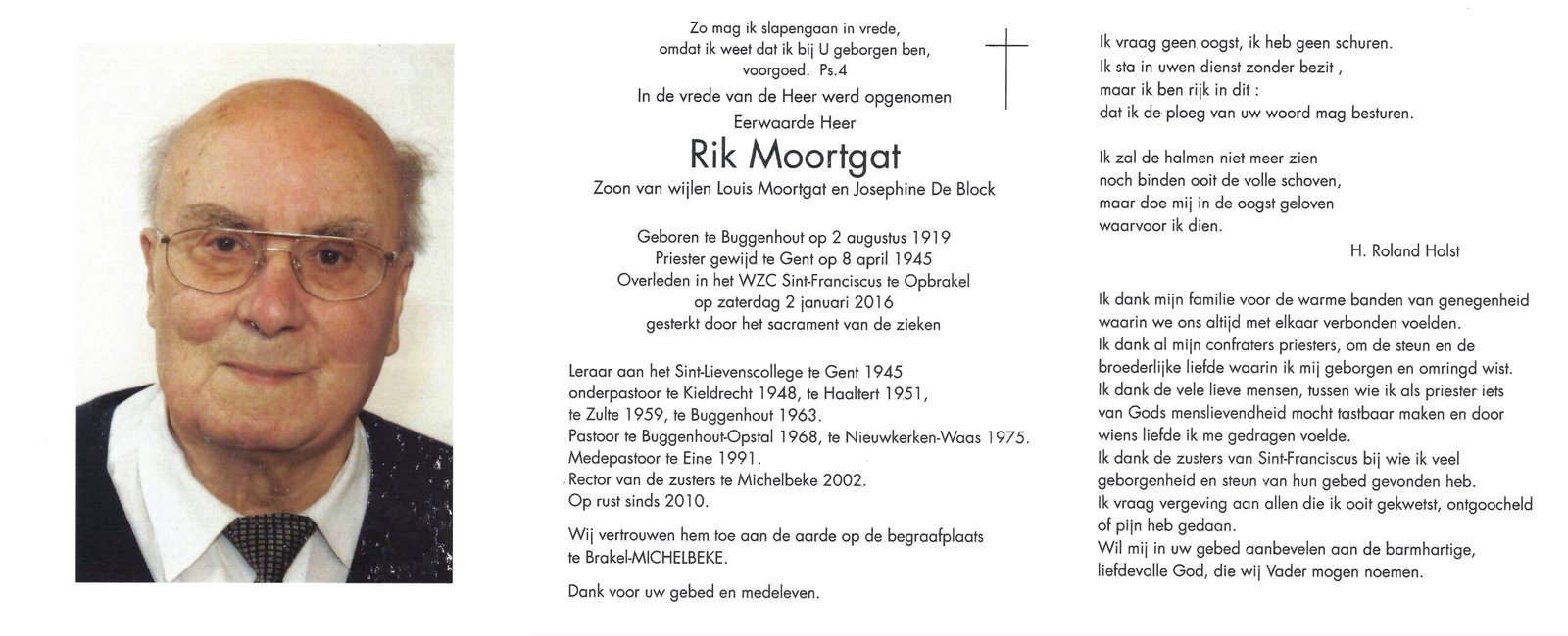 | Moortgat Rik, Onderpastoor Haaltert | Buggenhout | 02/08/1919 | Opbrakel | 02/01/2016 |