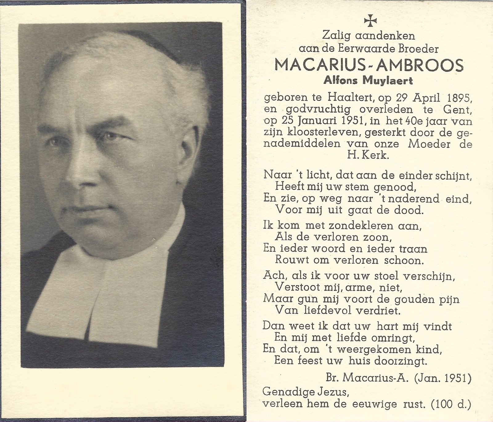 | Muylaert Alfons, Broeder Macarius-Ambroos | Haaltert | 29/04/1895 | Gent | 25/01/1951 |