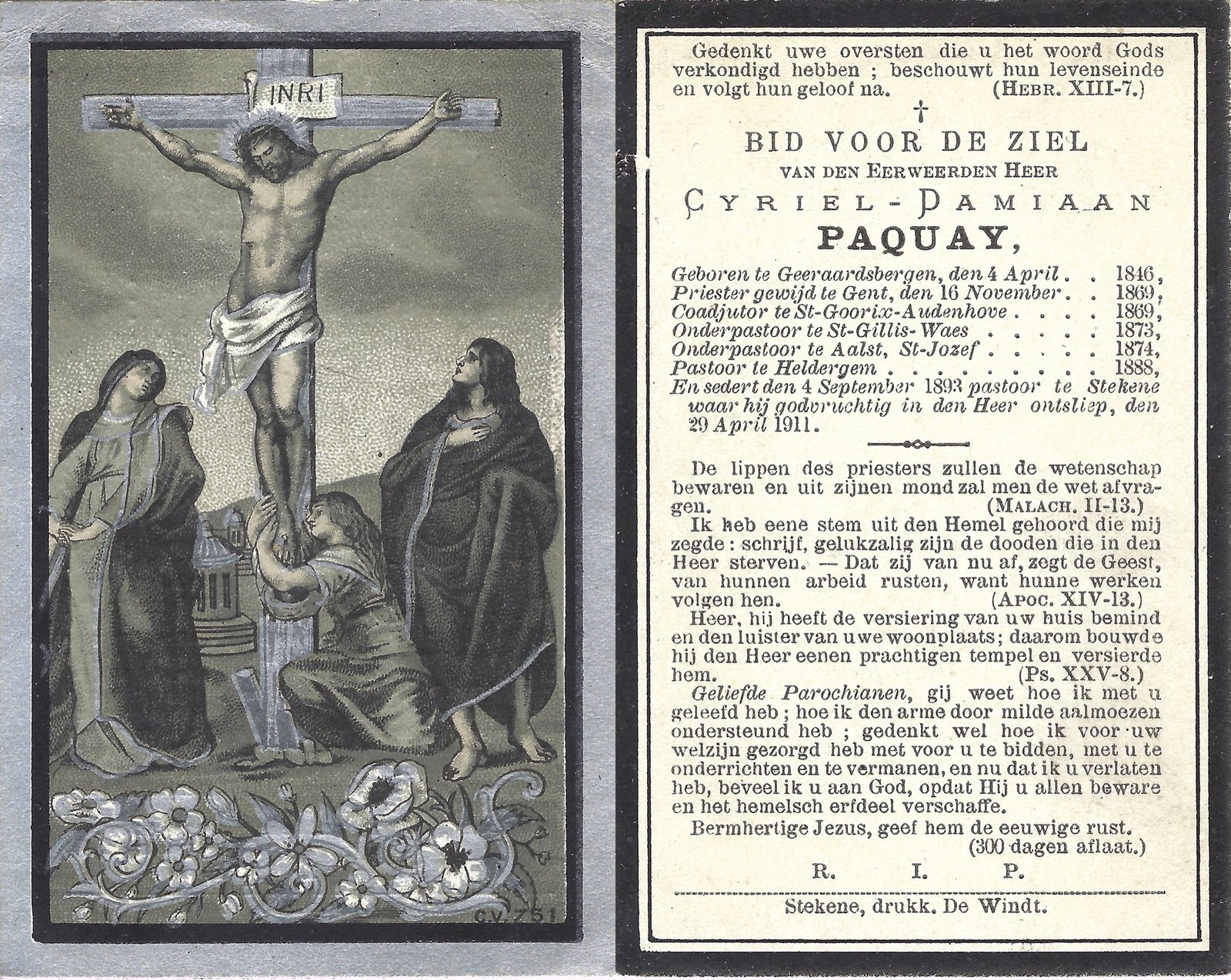 | Paquay Cyriel, Priester Heldergem | Geraardsbergen | 04/04/1846 | Stekene | 29/04/1911 |