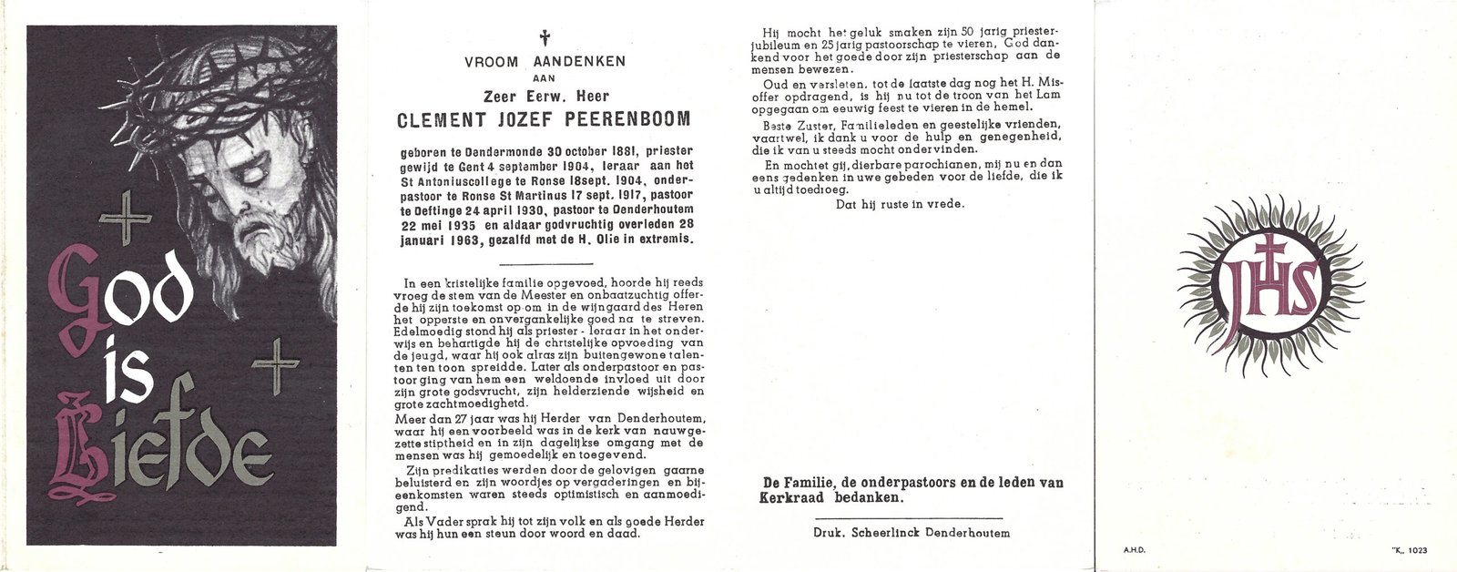 | Peerenboom Clement, Priester Denderhoutem | Dendermonde | 30/10/1881 | Denderhoutem | 28/01/1963 |