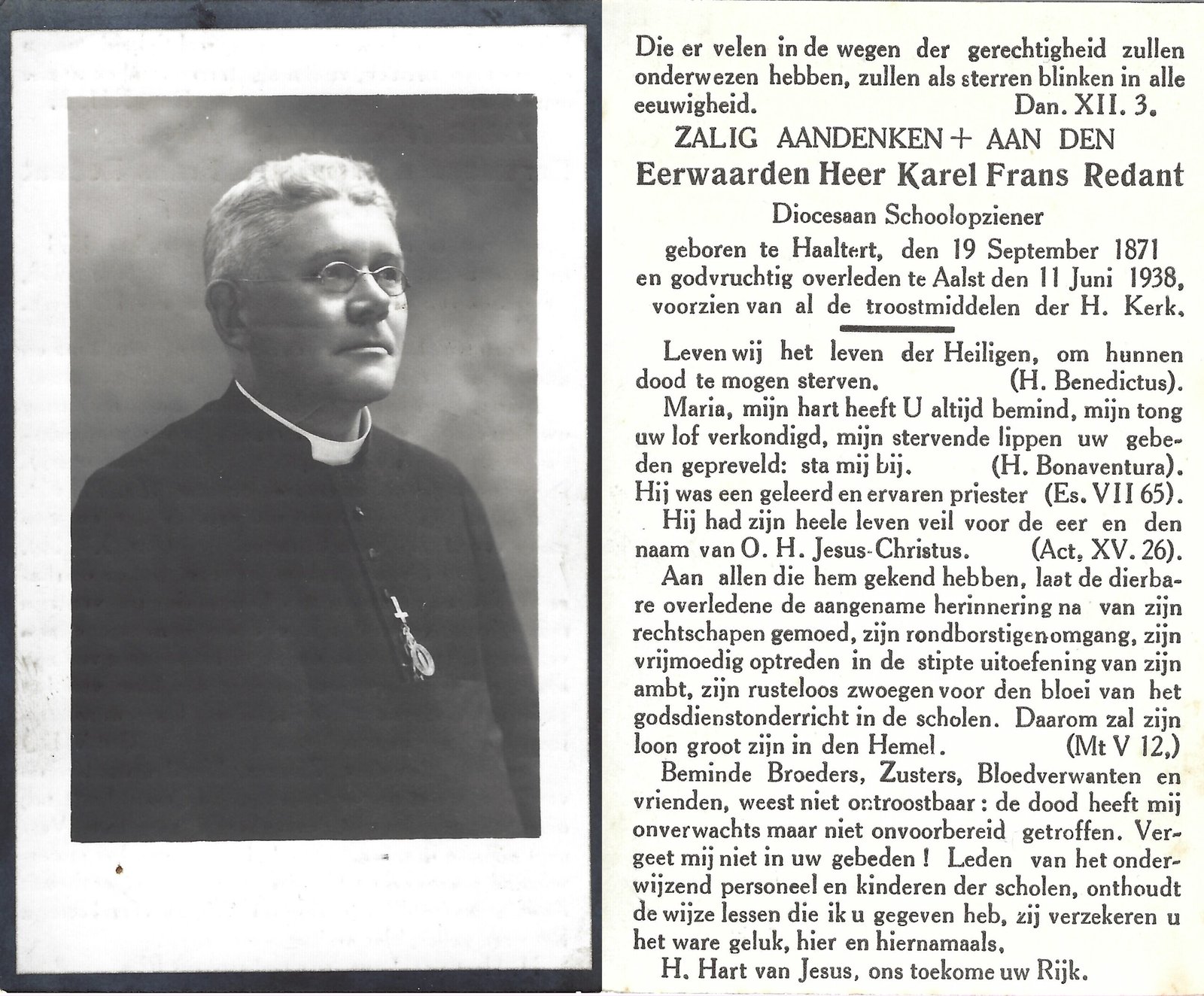 | Redant Karel, Priester | Haaltert | 19/09/1871 | Aalst | 11/06/1938 |