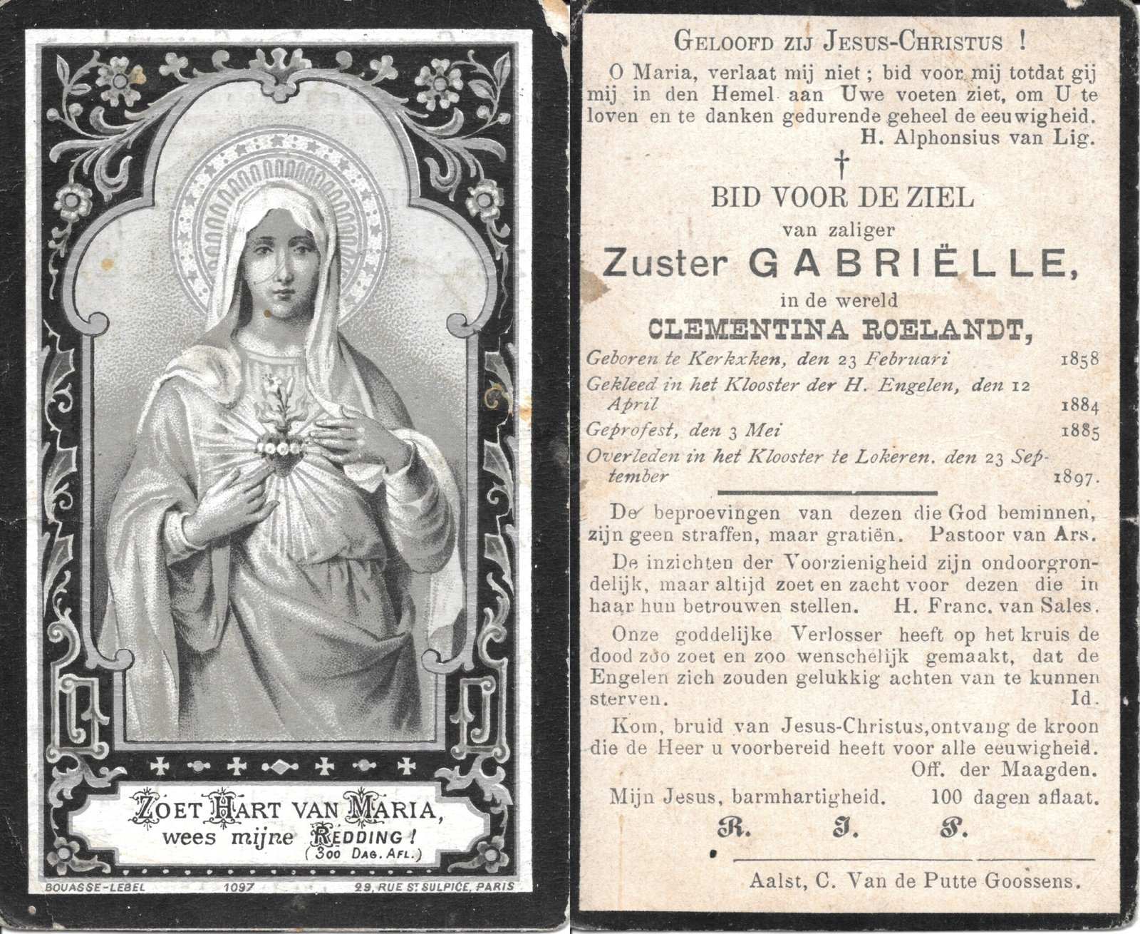 | Roelandt Clementina, Zuster Gabriëlle | Kerksken | 23/02/1858 | Lokeren | 23/09/1897 |