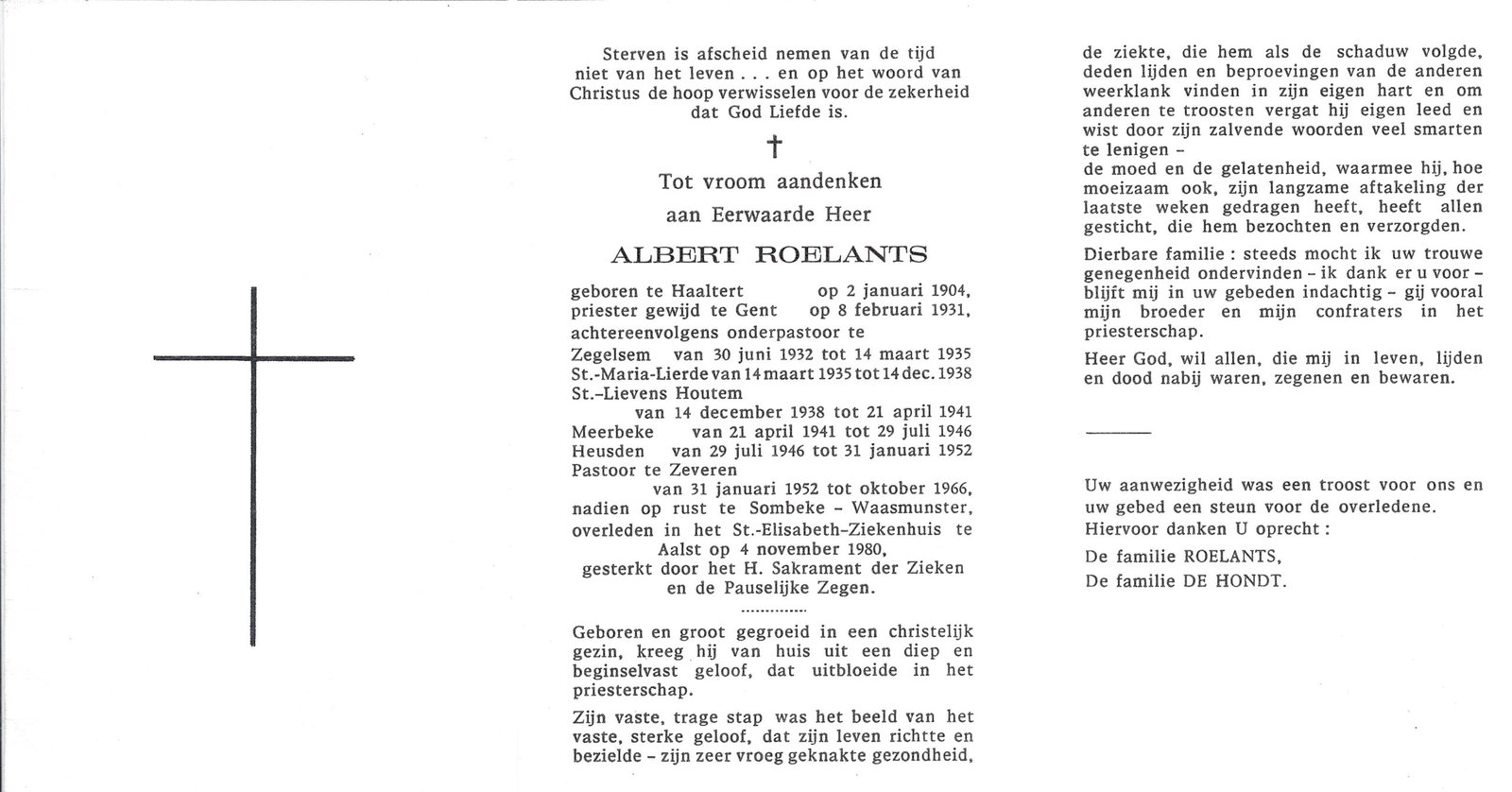 | Roelants Albert, Priester | Haaltert | 02/01/1904 | Aalst | 04/11/1980 |